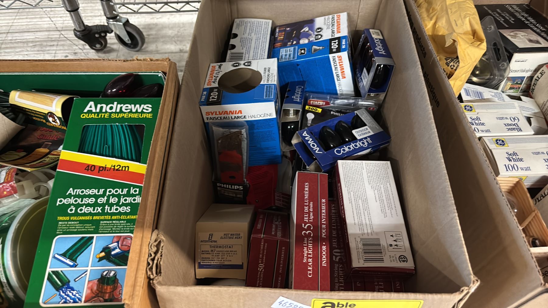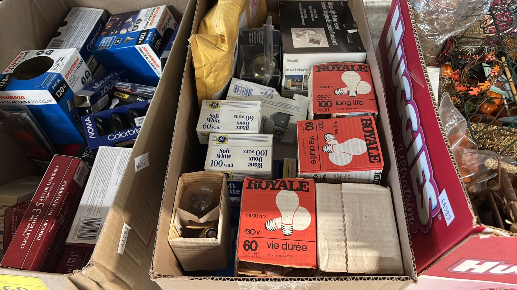 ASSORTED OUTDOOR /INDOOR LIGHT BULBS, CHRISTMAS LIGHTS, TWO TUBE LAWN + GARDEN SPRINKLER, FALL DECOR & MORE