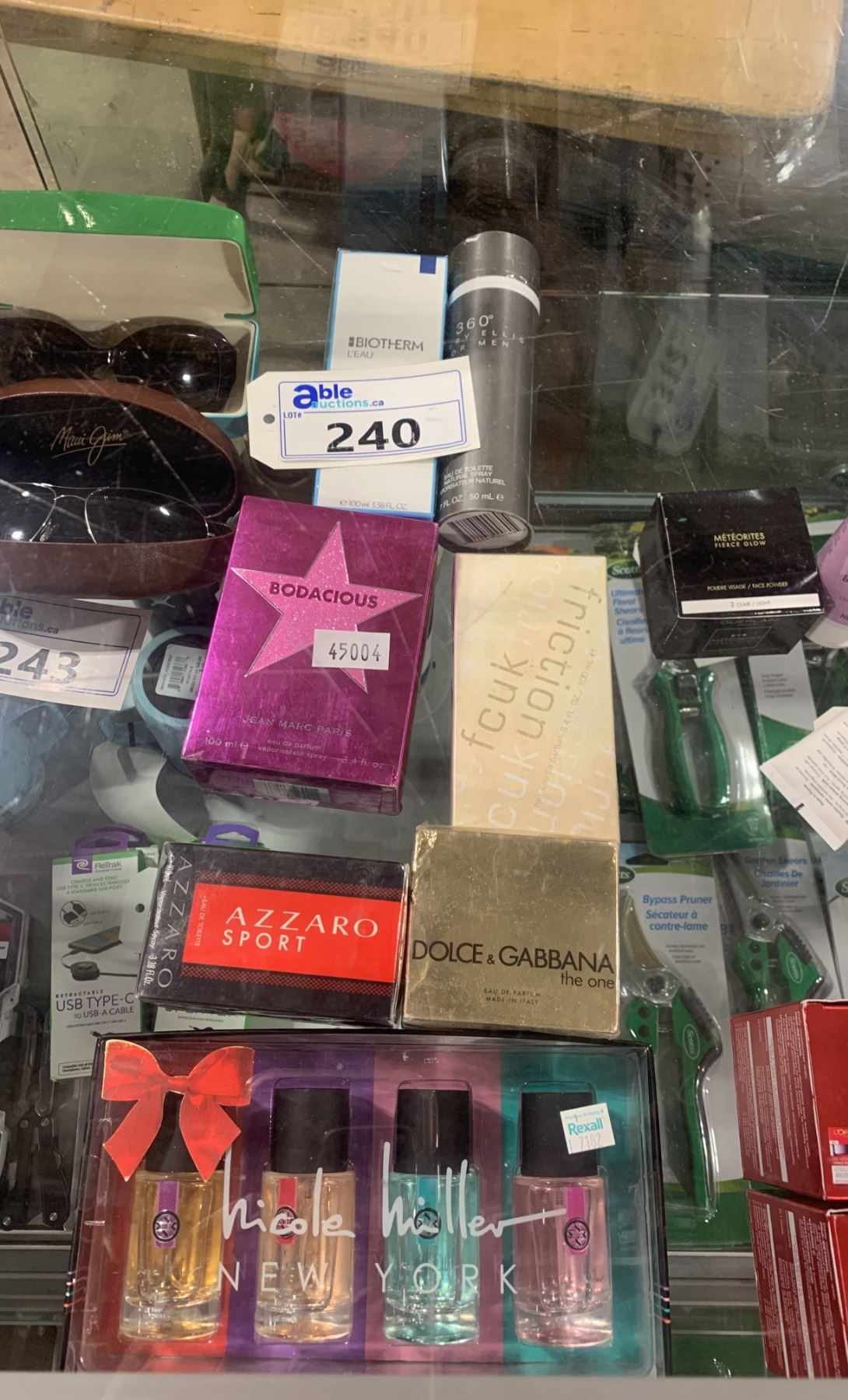 ASSORTED PERFUMES INCLUDING ; DOLCE & GABBANA, FRICTION FCUK, NICOLE MILLER, AZZARO SPORT, 360 PERRY ELLIS, & BIOTHERM