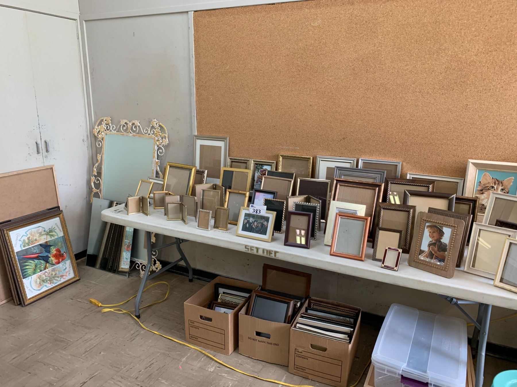 ASSORTED PHOTO FRAMES & MIRRORS (TABLE NOT INCLUDED)