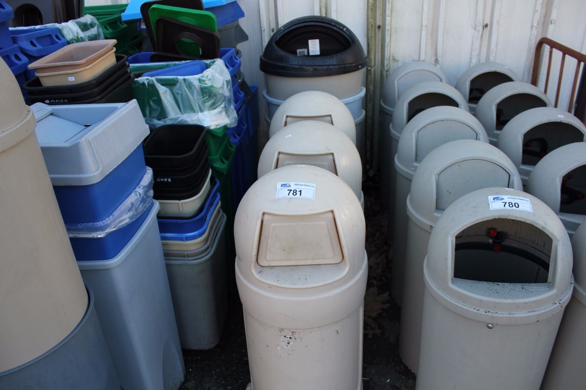 ASSORTED PLASTIC OUTDOOR GARBAGE CANS