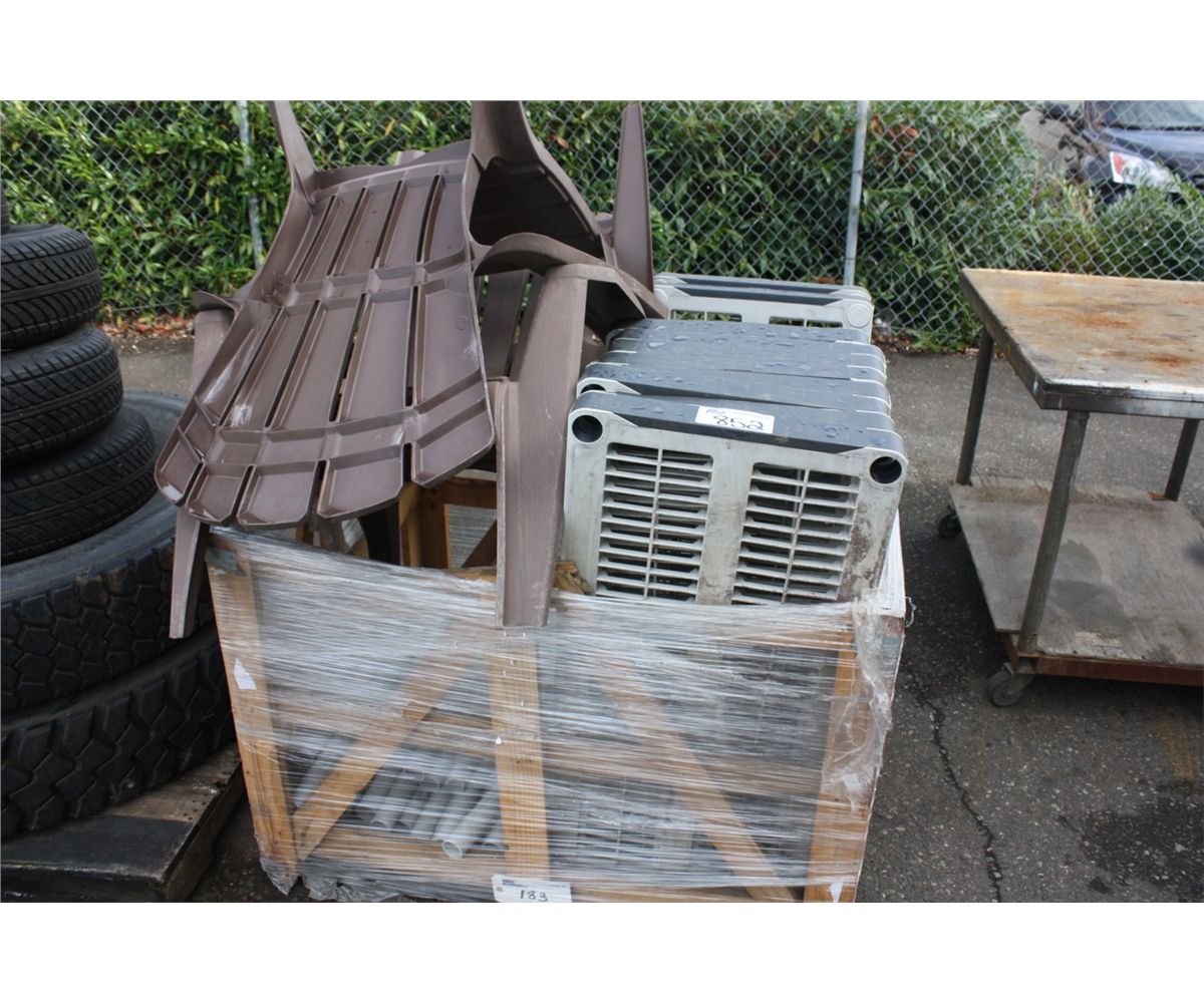 ASSORTED PLASTIC SHELVES & CHAIRS