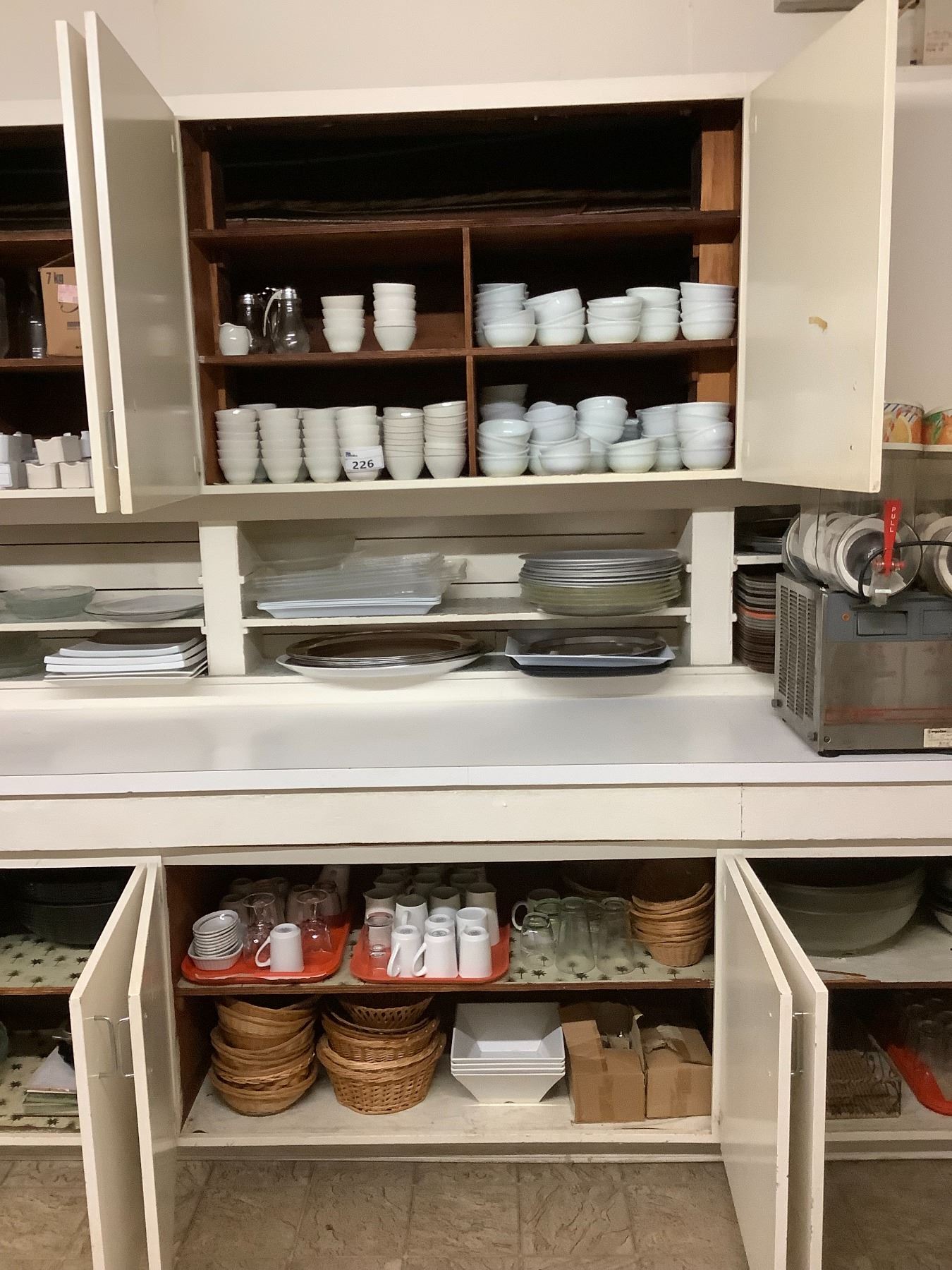 ASSORTED PLATES, BOWLS, MUGS, CUPS, & BASKETS