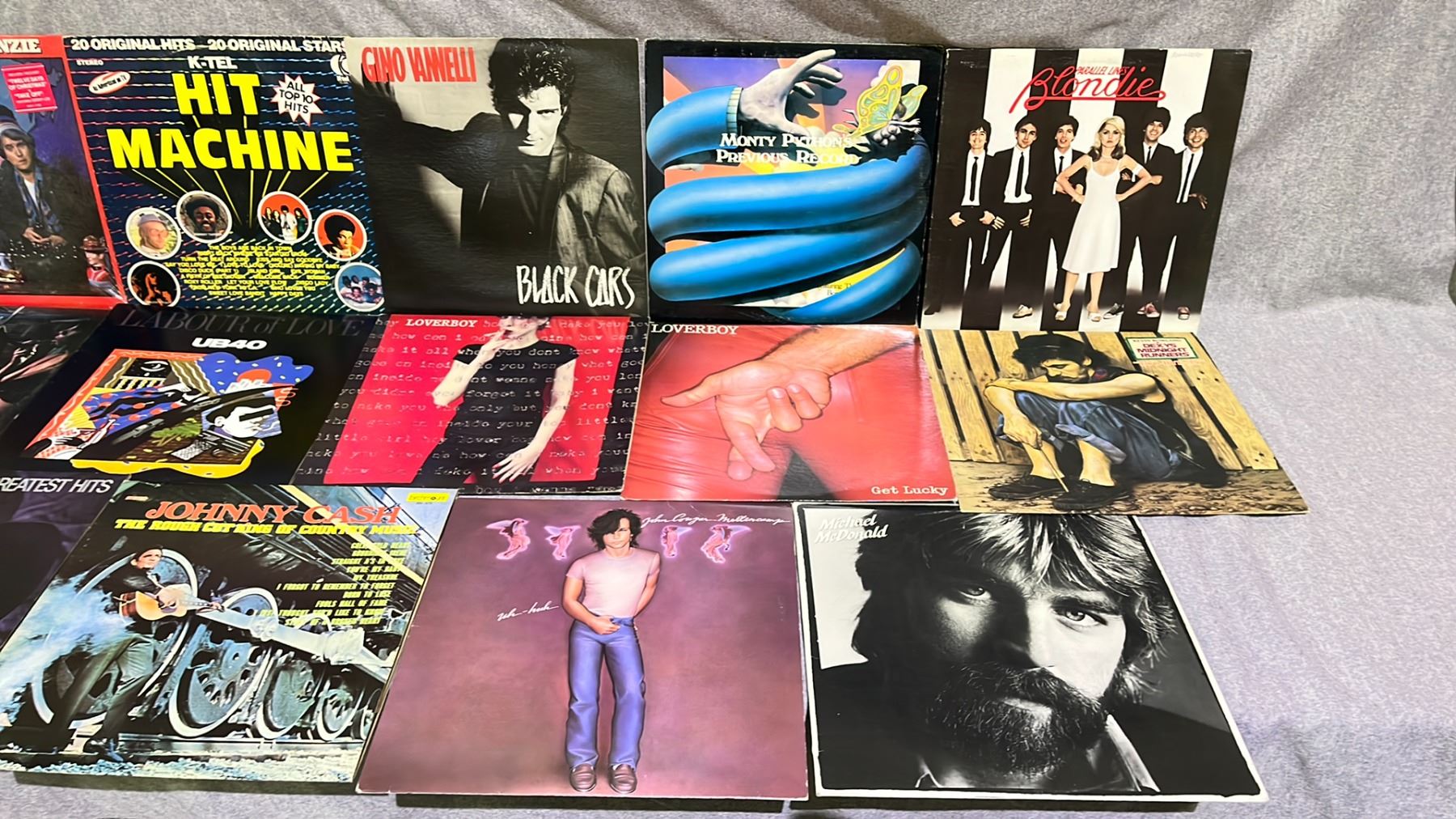 ASSORTED RECORDS INCLUDING; DAVID LEE ROTH, BLONDIE, BRYAN ADAMS AND MORE