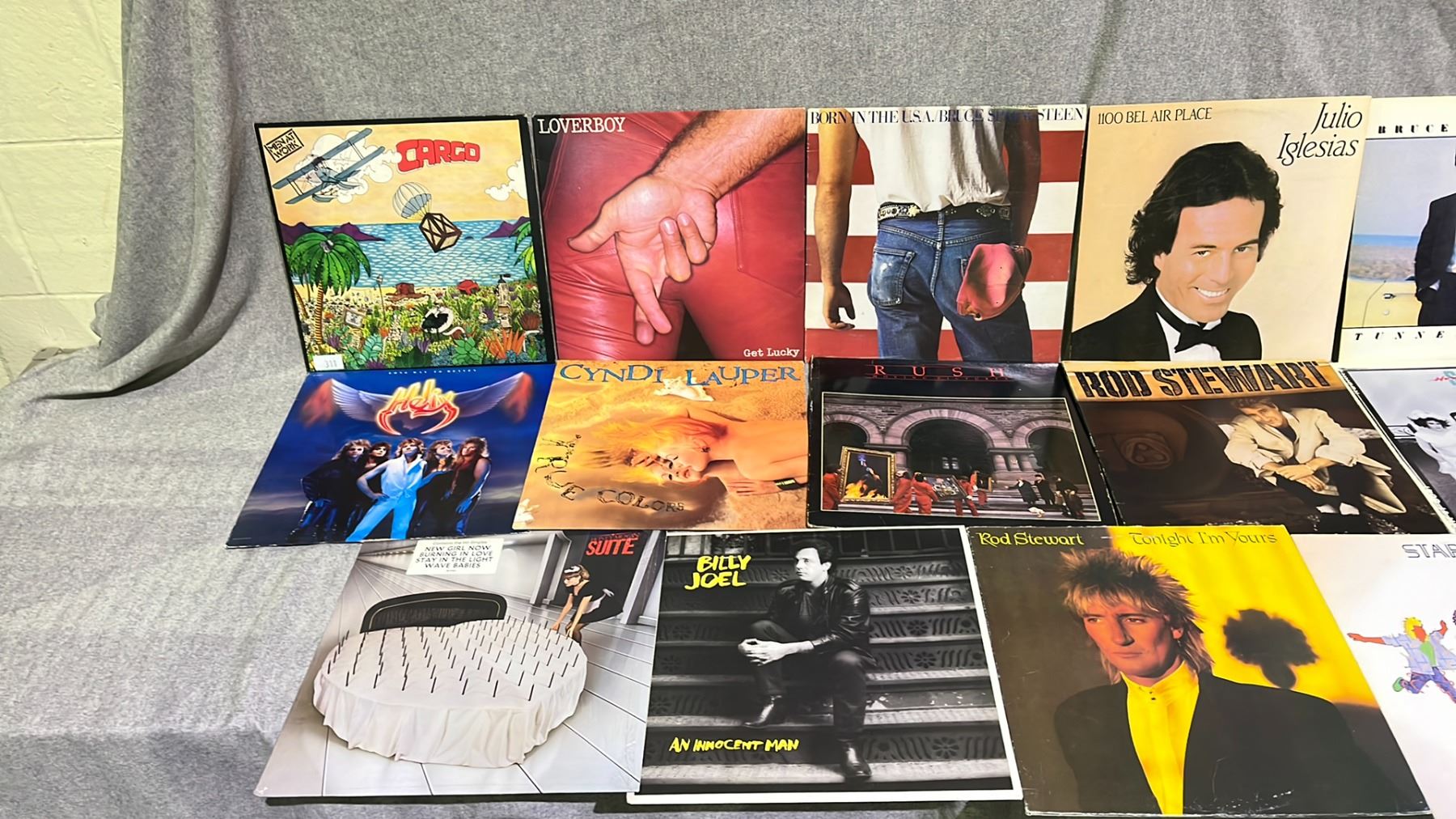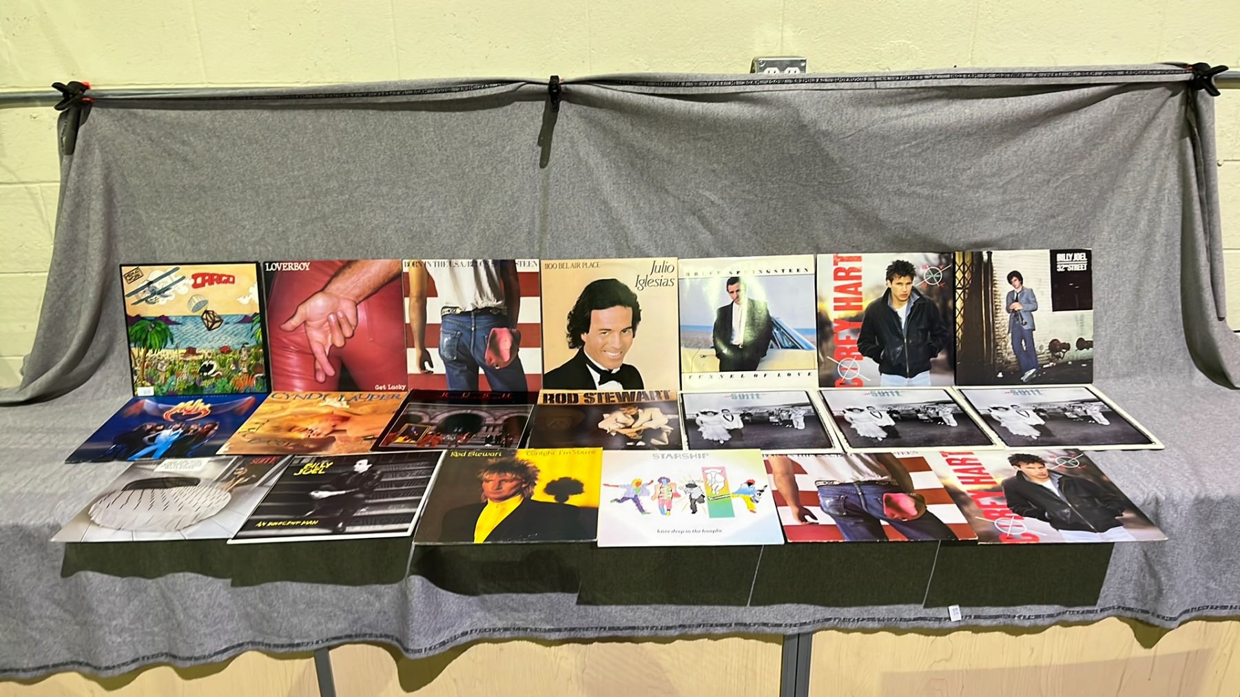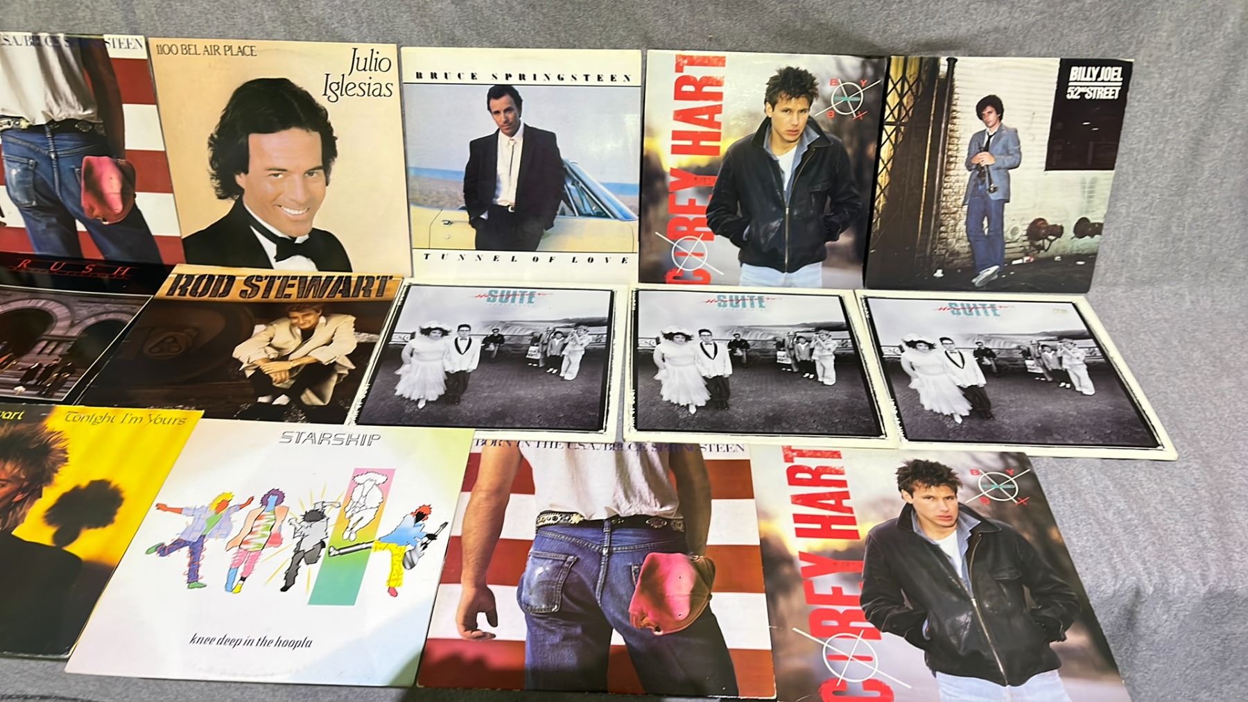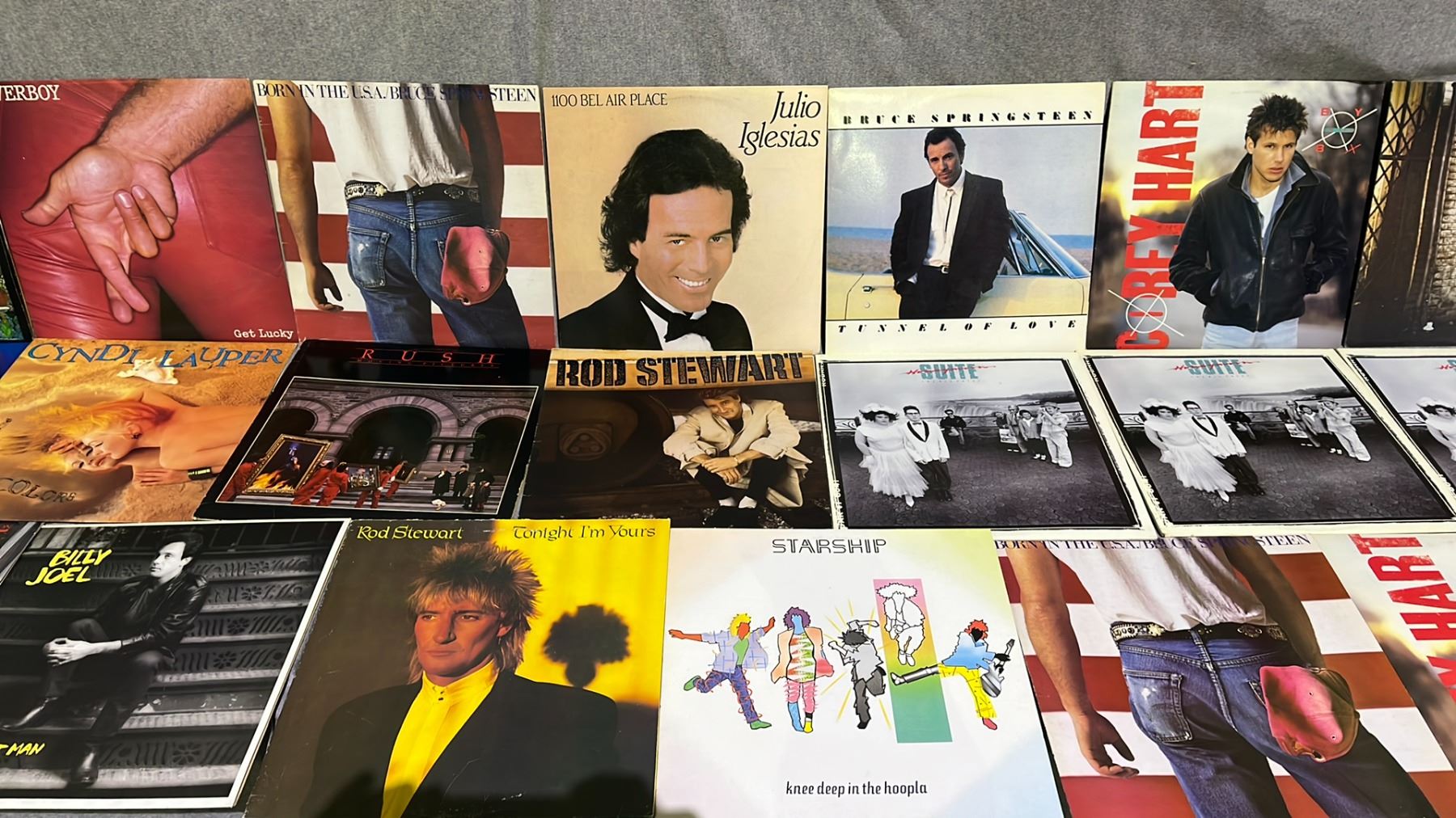 ASSORTED RECORDS INCLUDING; MEN AT WORK, BRUCE SPRINGSTEEN, JULIO IGLESIAS AND MORE