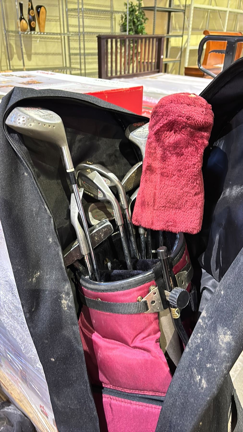 ASSORTED RH GOLF CLUBS WITH GOLF BAG & AUGUSTA GOLF BAG COVER