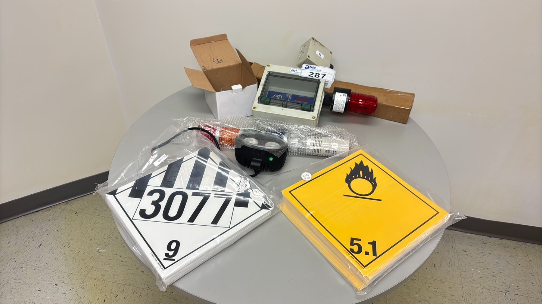 ASSORTED SAFETY SIGNS, BACK UP LIGHT & OVERLOAD LIGHT, FREIGHT PLAQUES