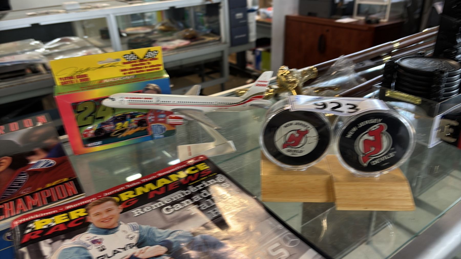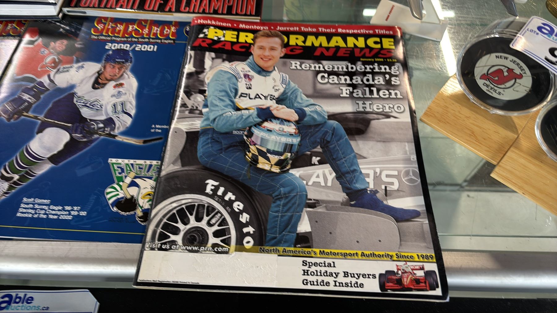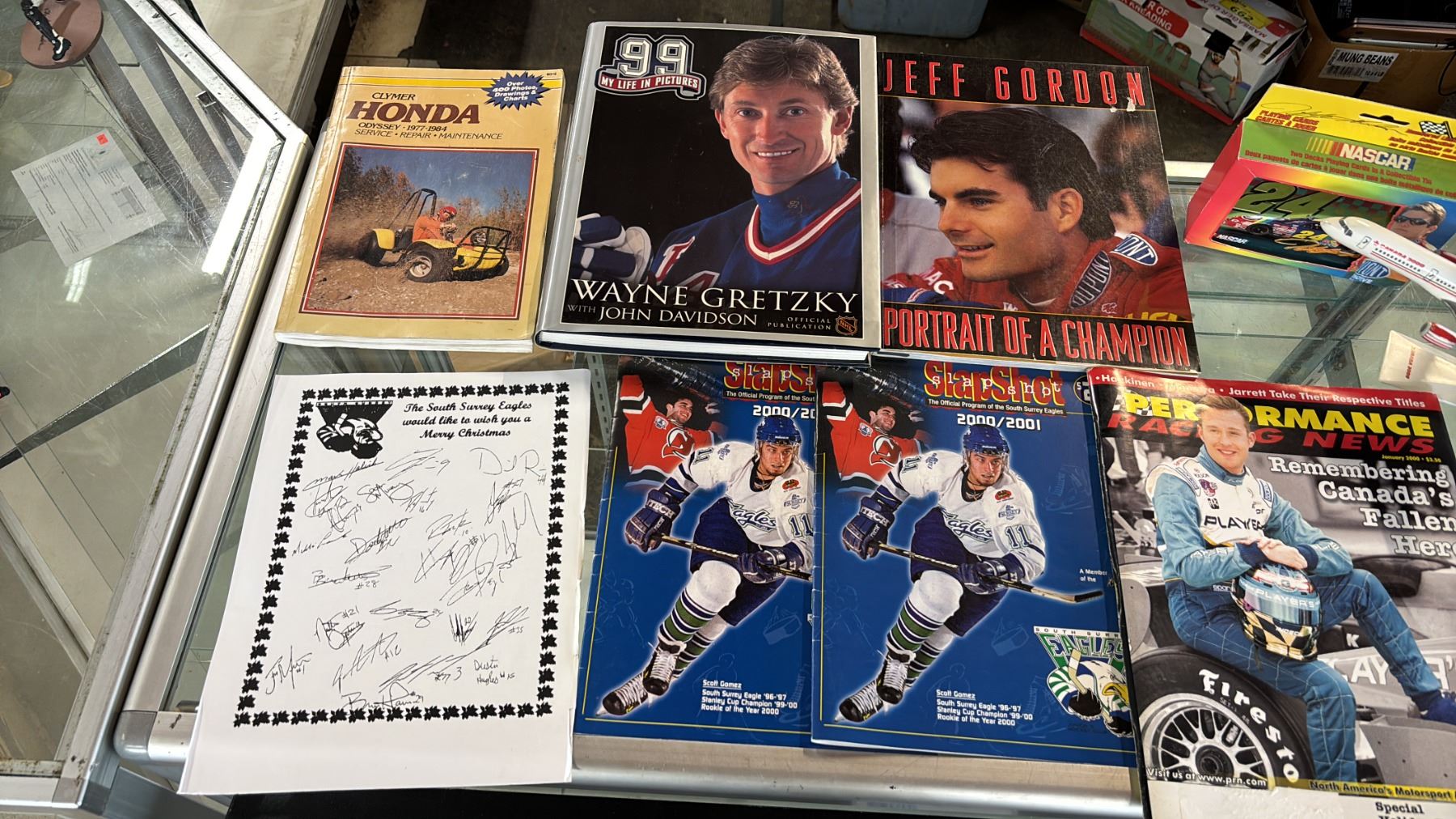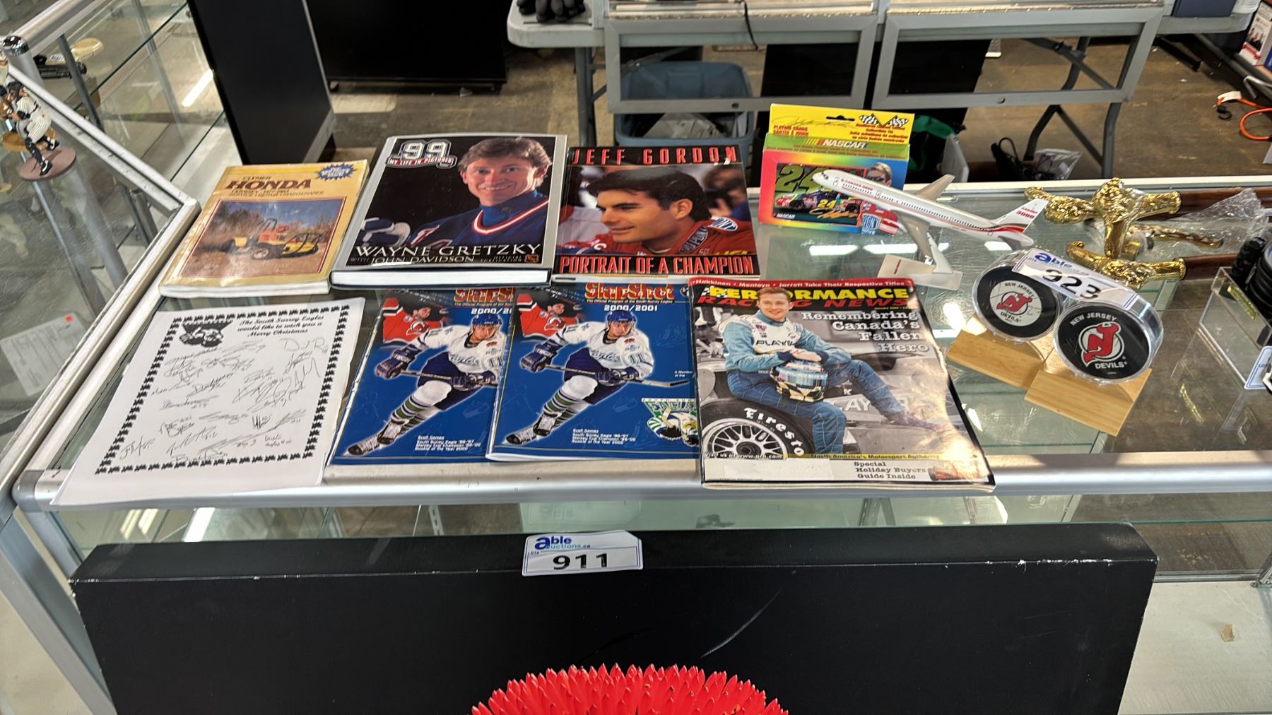 ASSORTED SPORTS MEMORABILIA: MAGAZINES, COFFEETABLE BOOKS, SIGNED HOCKEY PUCKS & MORE