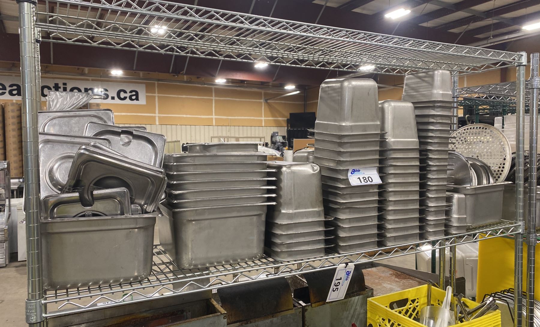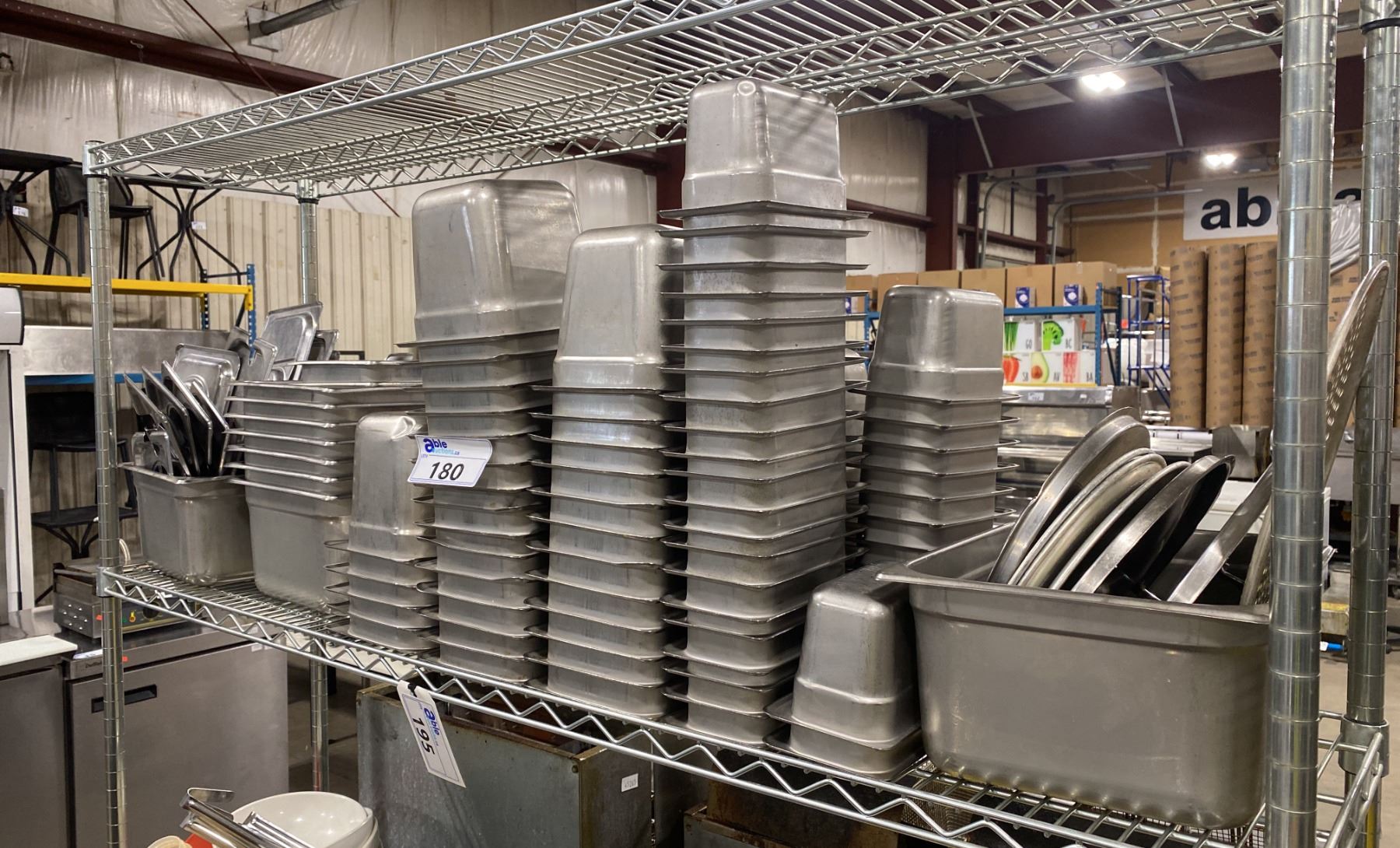 ASSORTED STAINLESS STEEL COMMERCIAL INSERTS & SOME LIDS