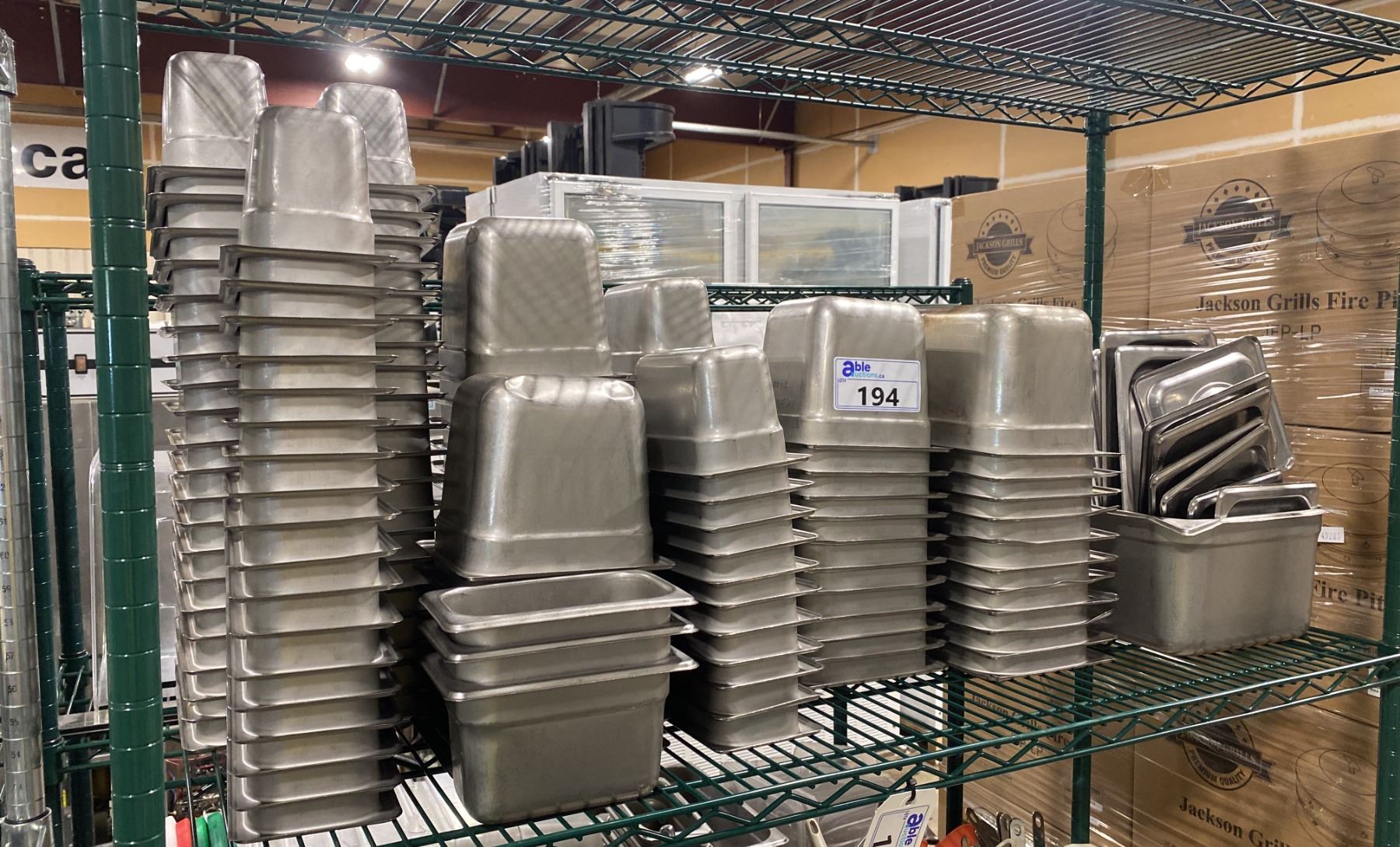 ASSORTED STAINLESS STEEL COMMERCIAL INSERTS & SOME LIDS