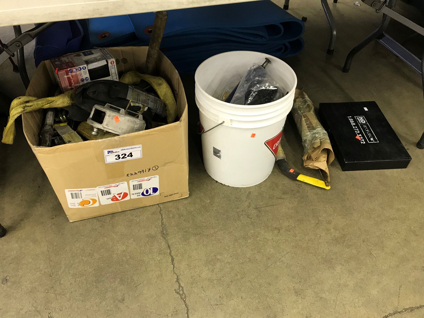 ASSORTED STRAPS, HAND TOOLS & MORE