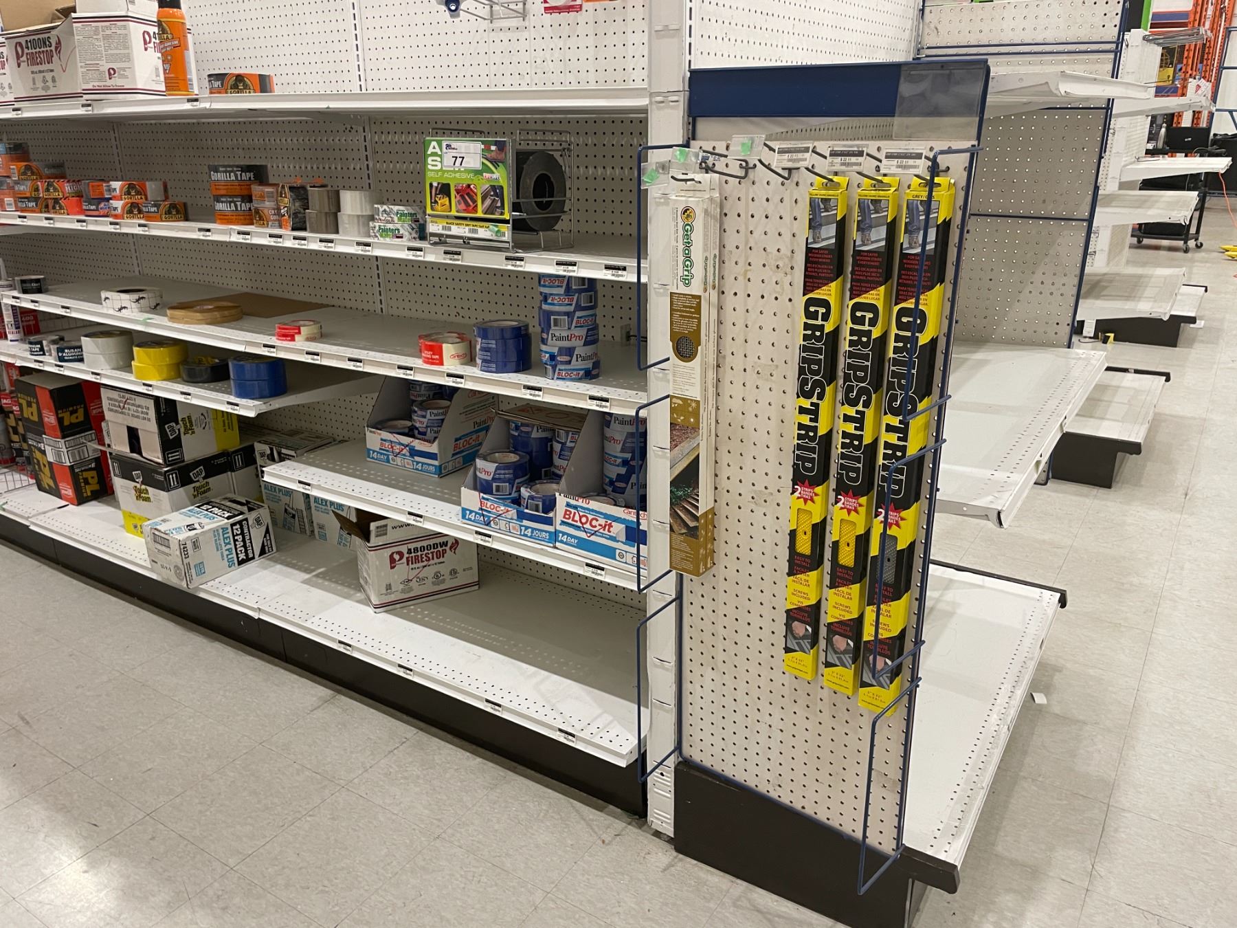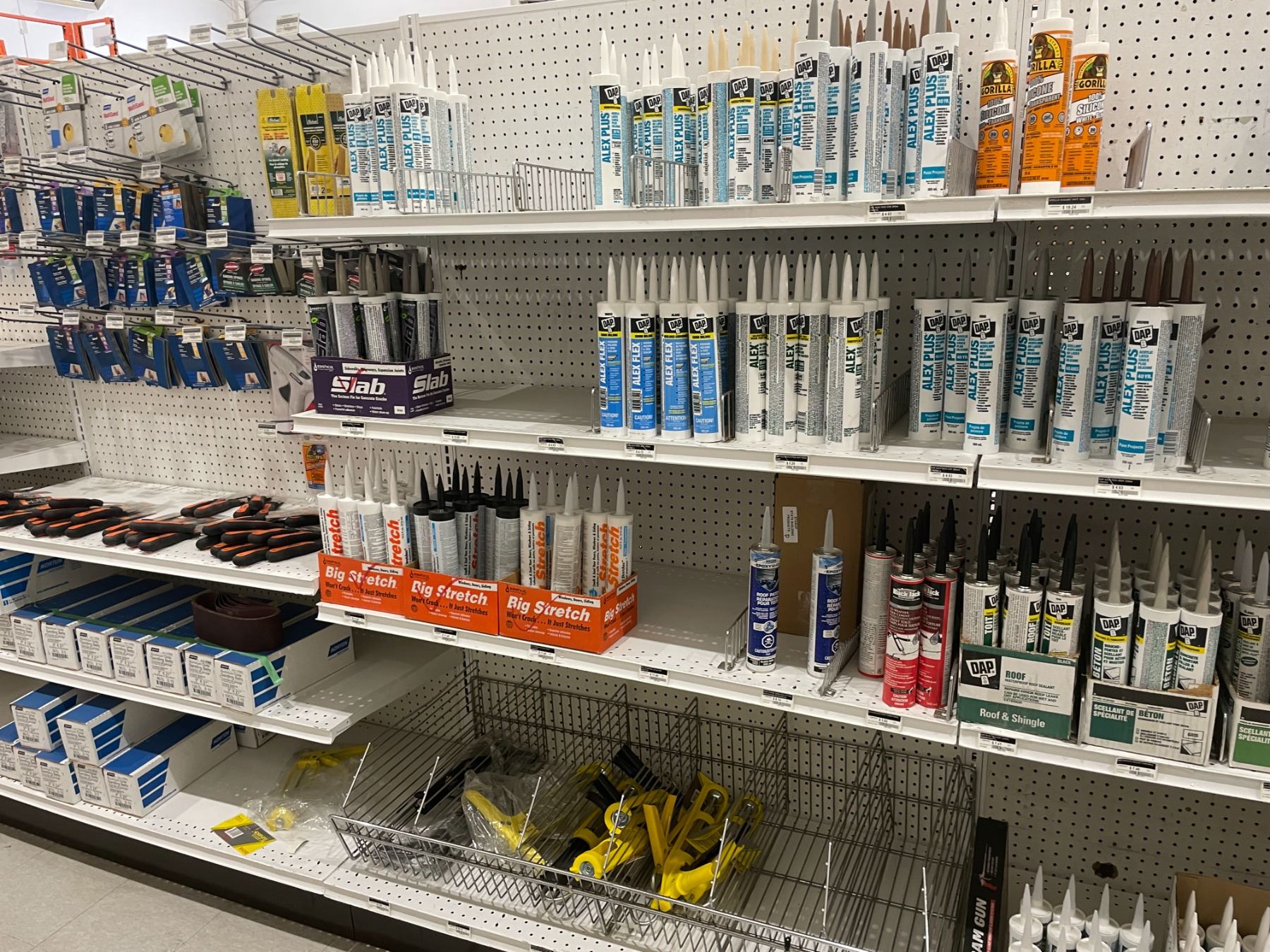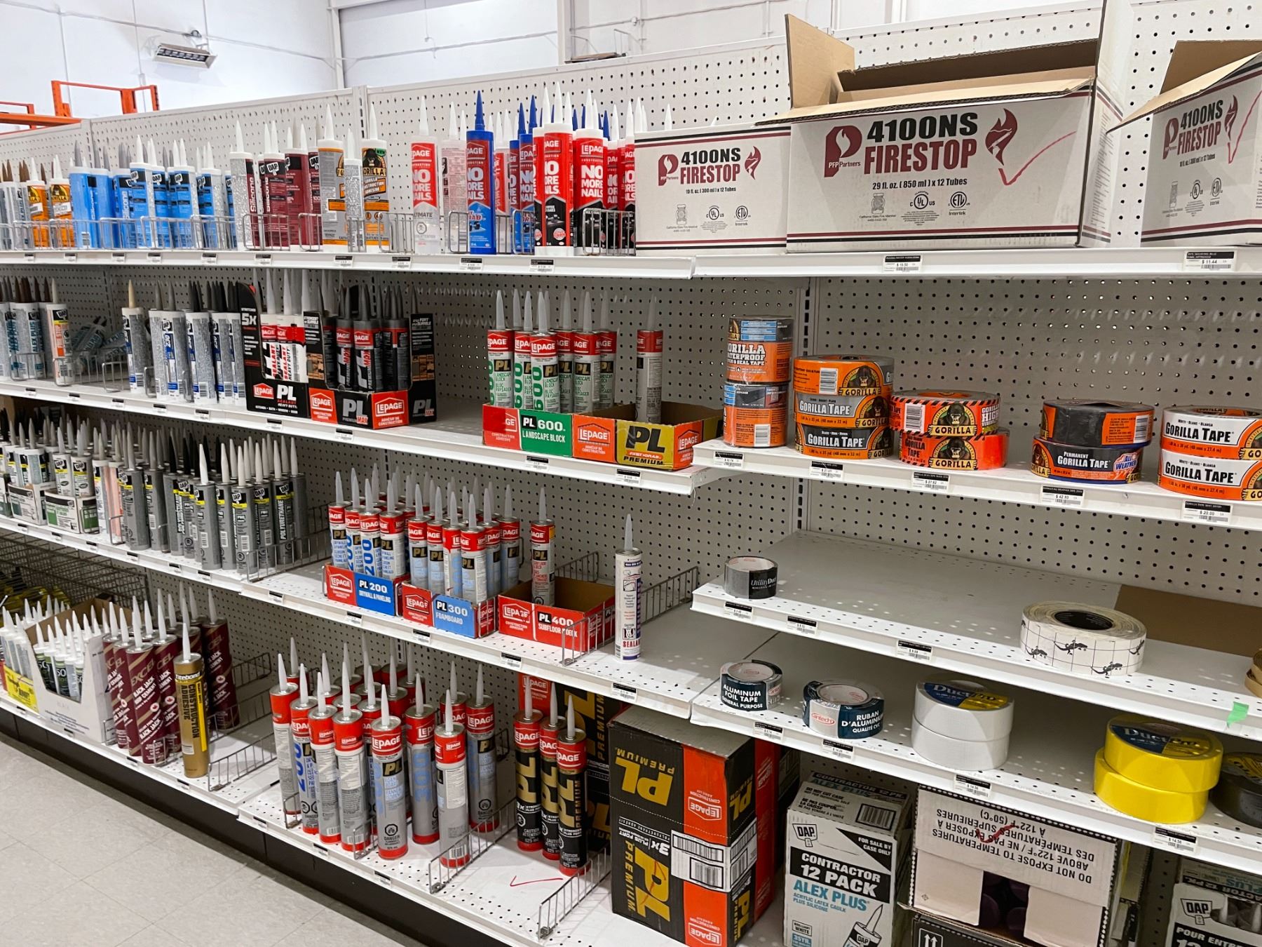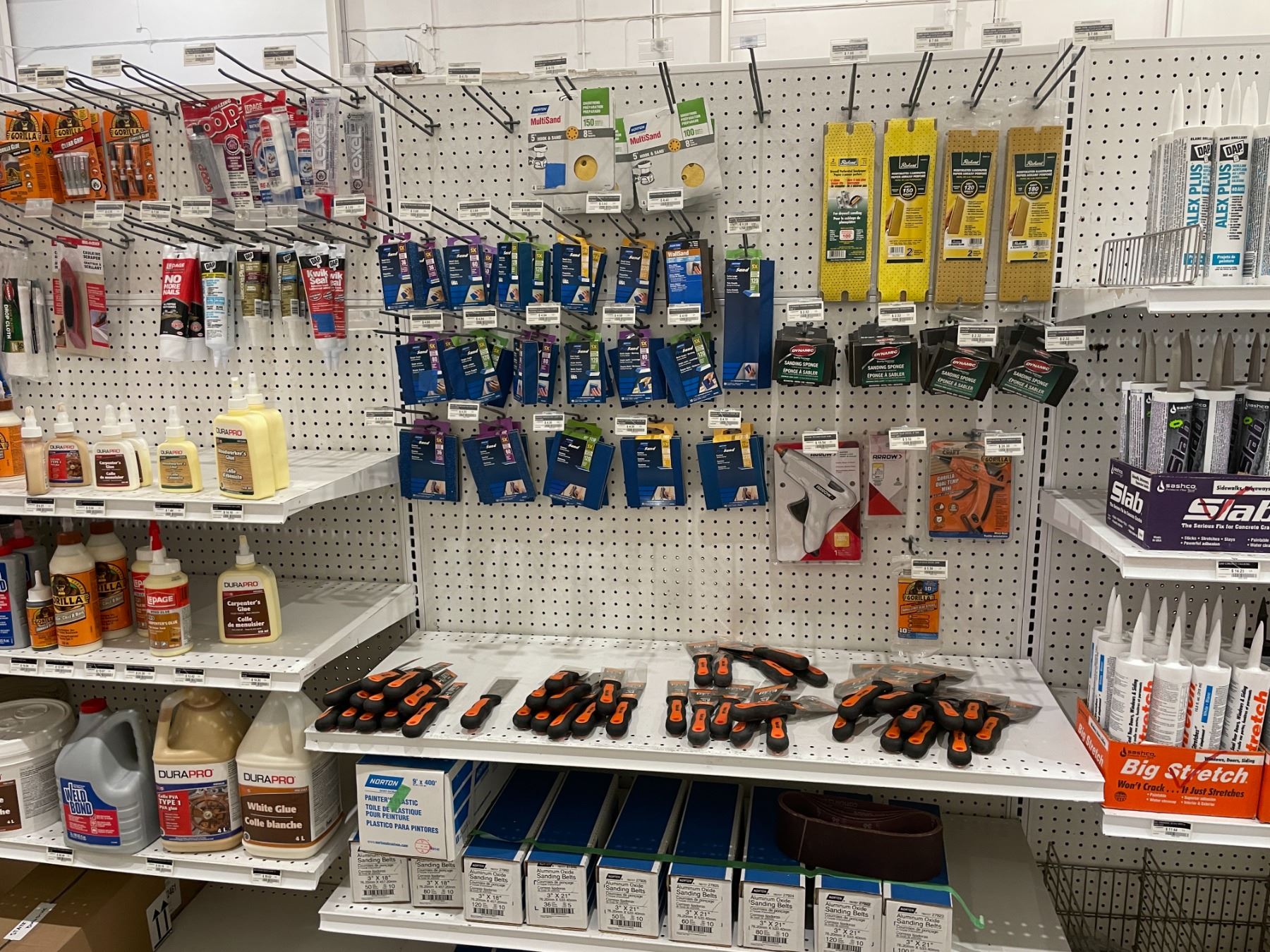 ASSORTED TAPES, CAULKINGS, SANDING DISCS, & PAINT SUPPLIES