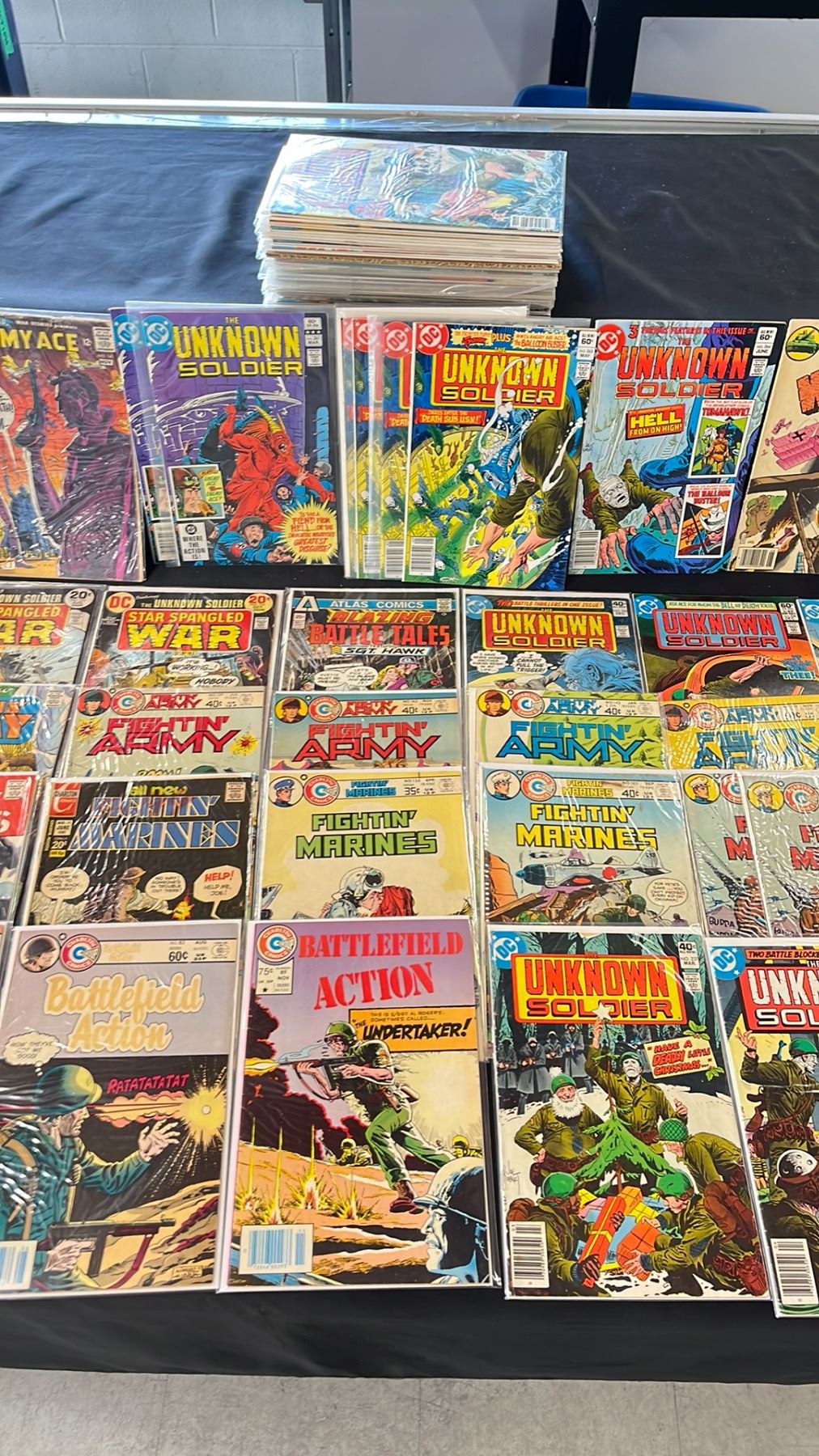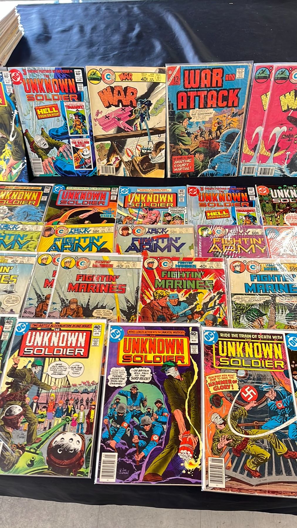 ASSORTED VINTAGE WAR COMIC BOOKS INCLUDING; THE UNKNOWN SOLDIER, FIGHTIN' ARMY, BATTLEFIELD ACTION & MORE
