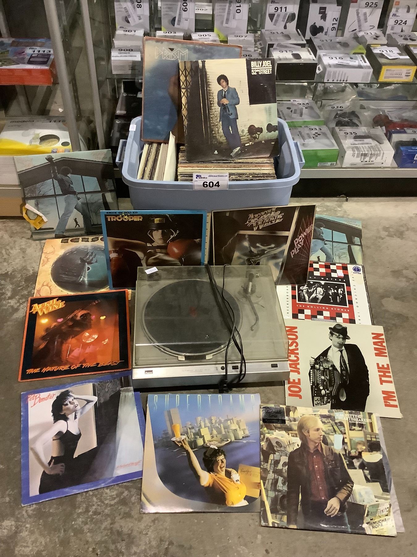 ASSORTED VINYLS AND SANSUI RECORD PLAYER