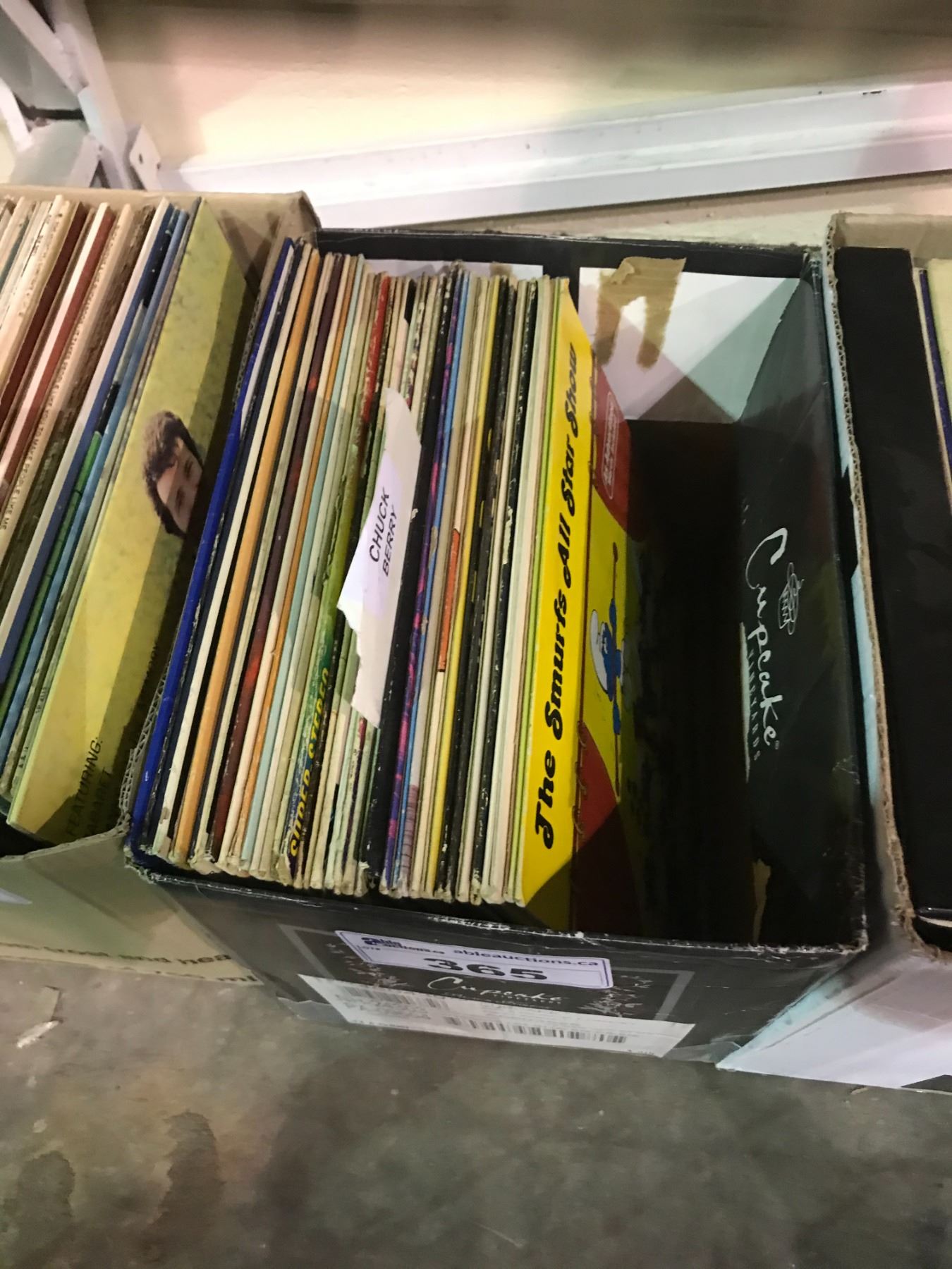 ASSORTED VINYLS SUCH AS: DISCO HITS, WALT DISNEY TRACKS, THE CHIPMUNKS SESAME STREET, THE SMURFS, & MUCH MORE