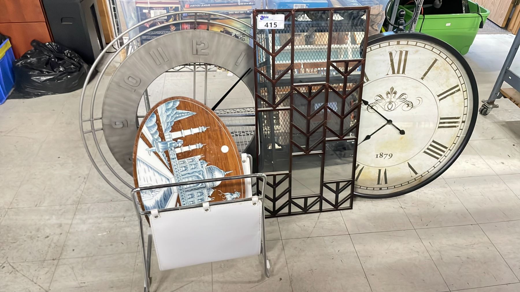 ASSORTED WALL ART, DECORATIVE CLOCK & MIRROR