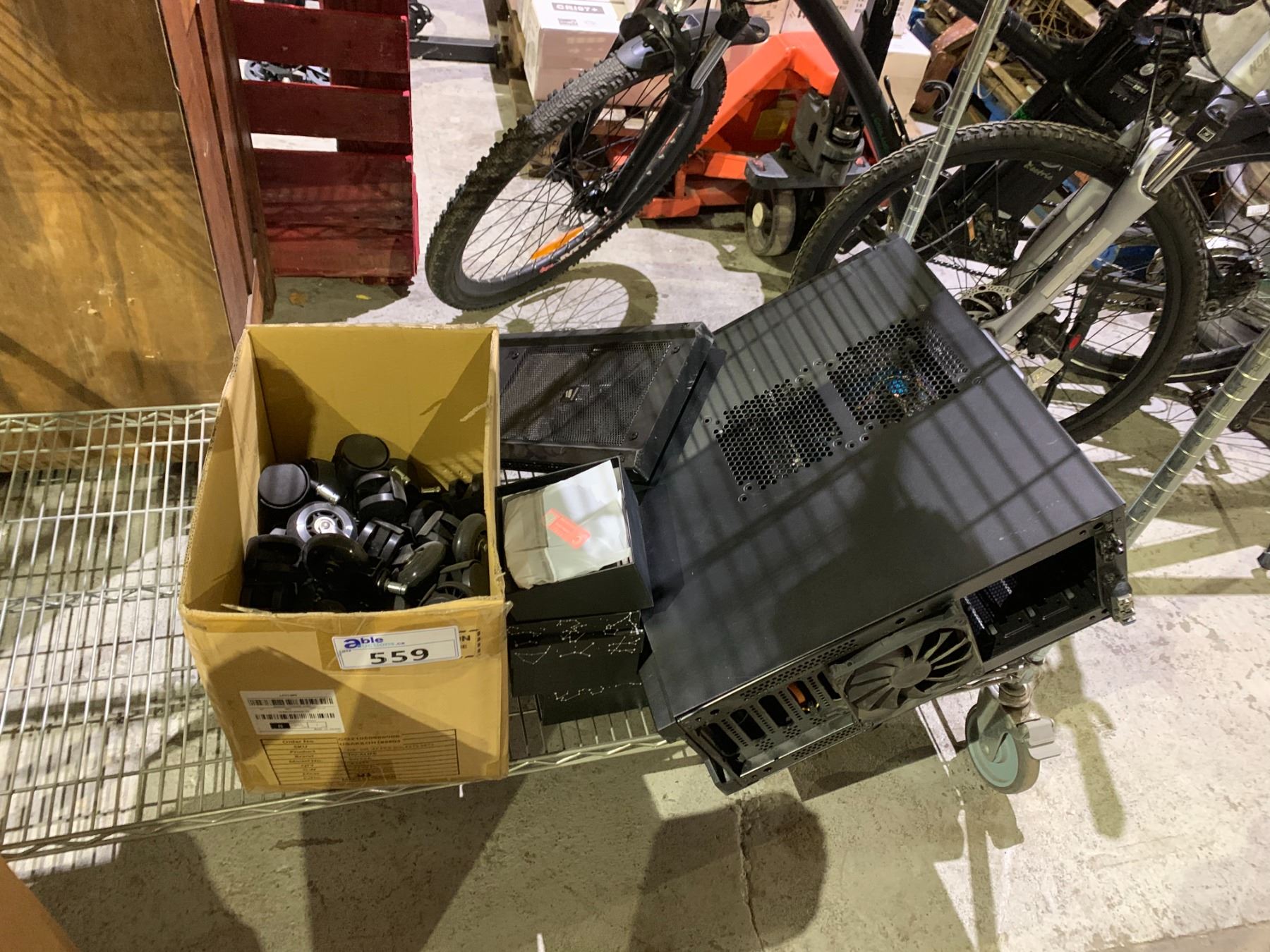 ASSORTED WHEELS, CONSTELLATION LIGHTS AND CORSAIR DESKTOP COMPUTER (NO HARD DRIVE)