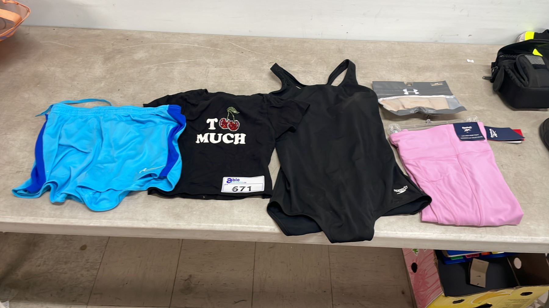 ASSORTED WOMEN'S CLOTHING INCLUDING; NIKE SHORTS, SPEEDO SWIMSUIT, REEBOK LEGGINGS & MORE **ALL NEW