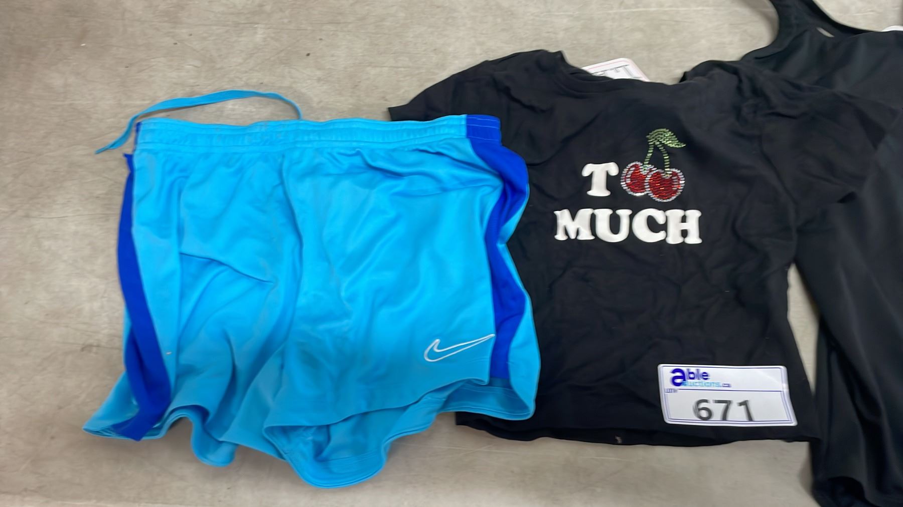 ASSORTED WOMEN'S CLOTHING INCLUDING; NIKE SHORTS, SPEEDO SWIMSUIT, REEBOK LEGGINGS & MORE **ALL NEW WITH TAGS, SOME WITH SECURITY TAGS**