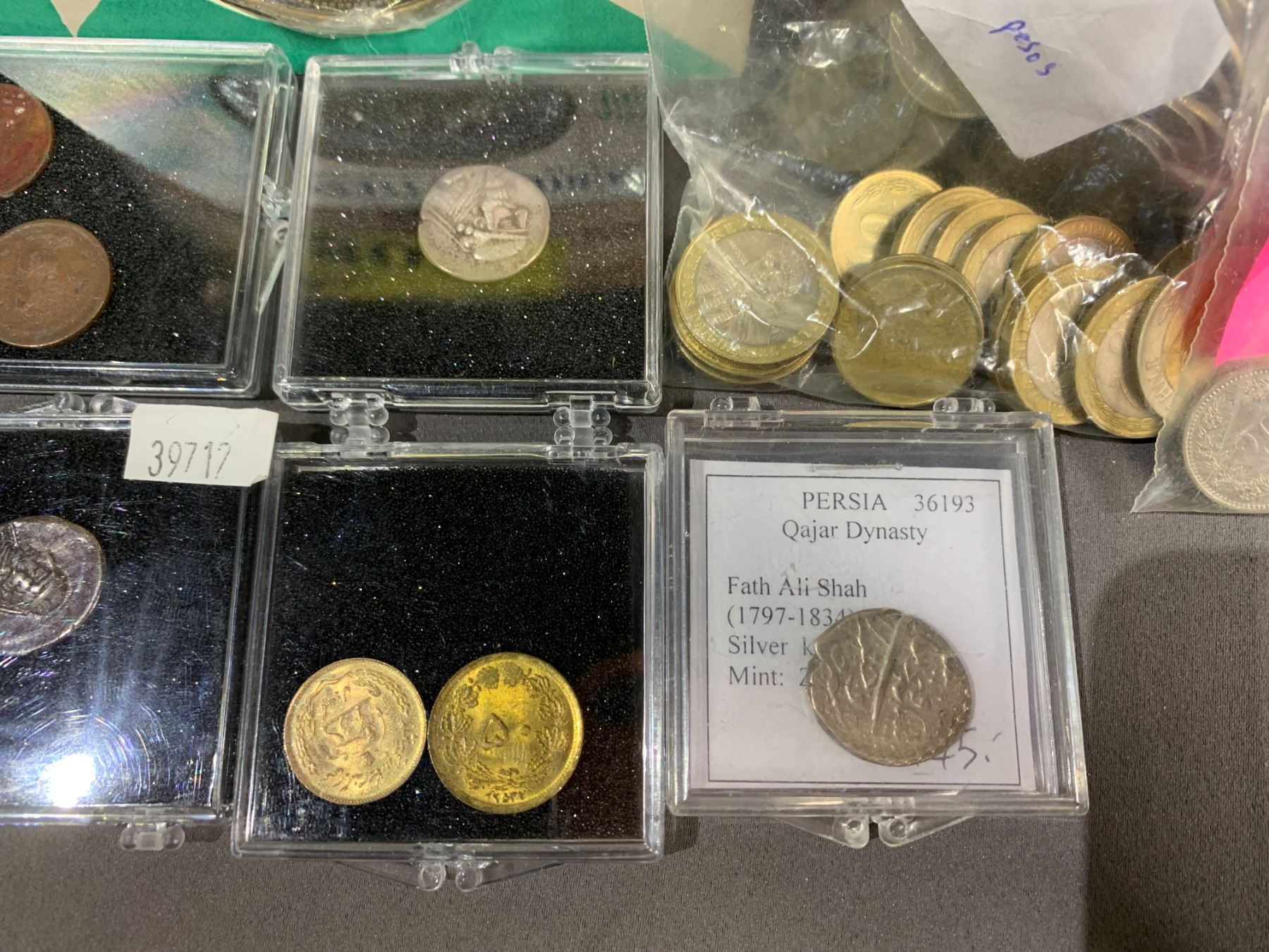 ASSORTED WORLD COINS INCLUDING; PERSIA, MEXICO, SWITZERLAND & MORE
