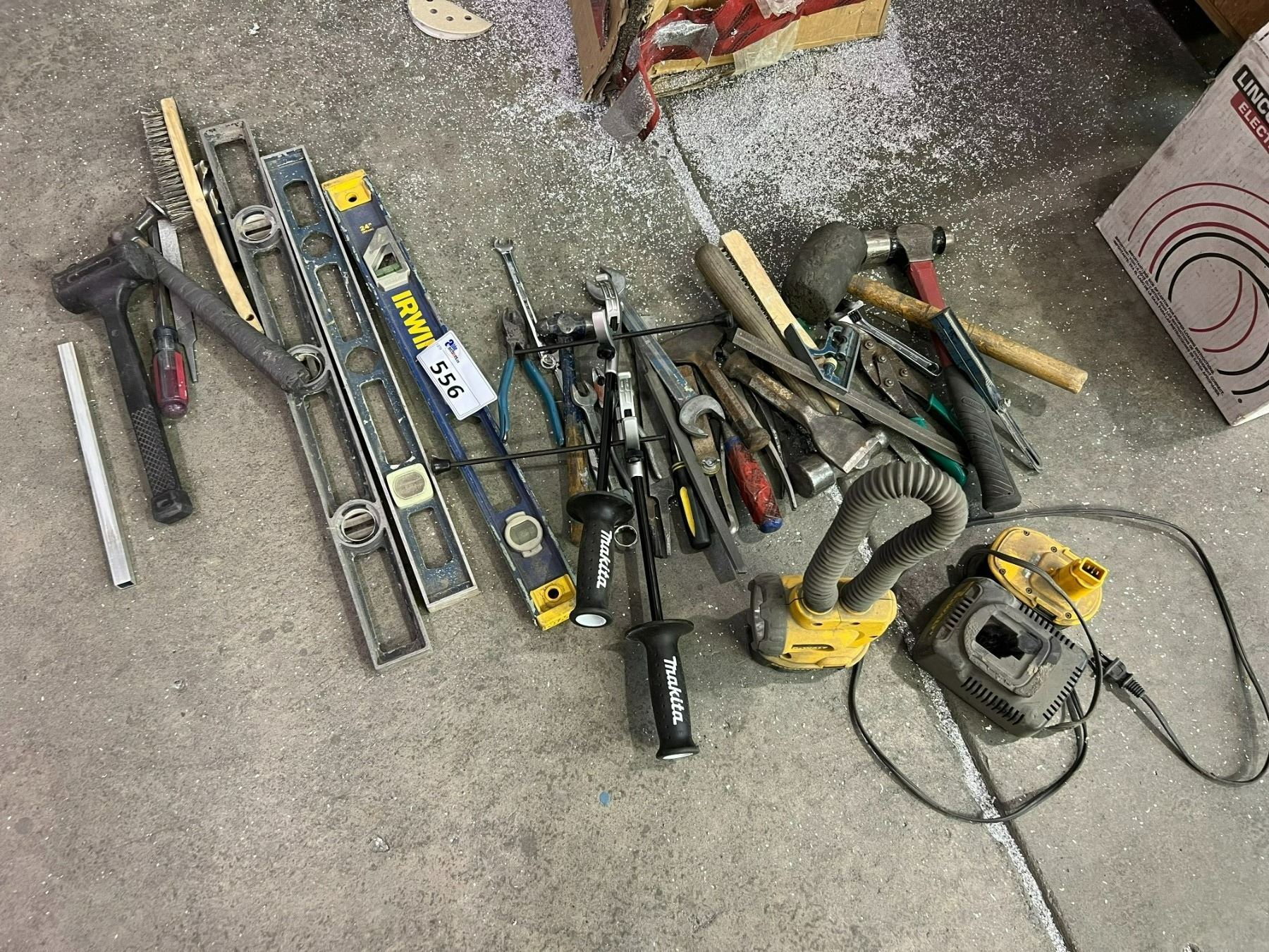 ASSORTMENT OF HAND TOOLS - 3 X LEVELS, 6 X HAMMERS, CHISELS, FILES,