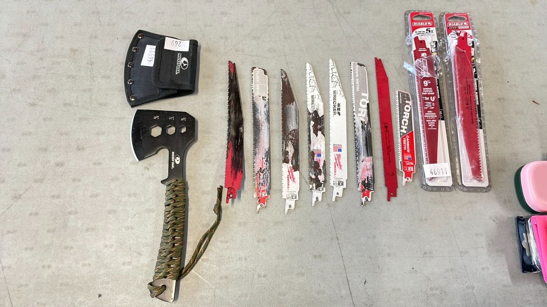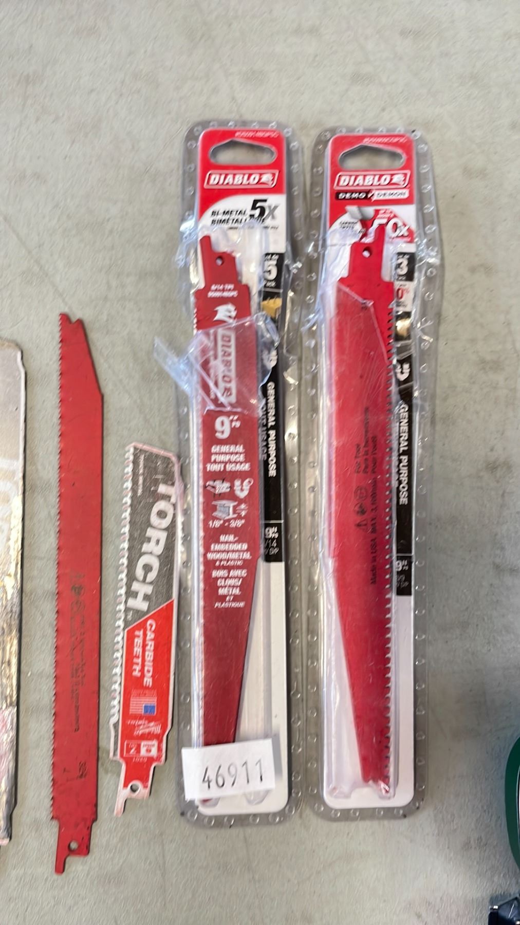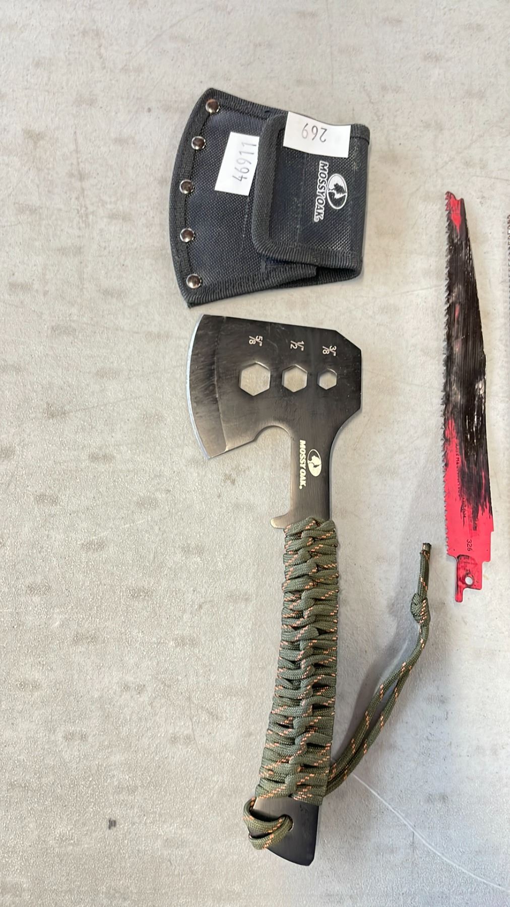 ASSRTED RECIPROCATING SAW BLADES & MOSSY OAK HATCHET