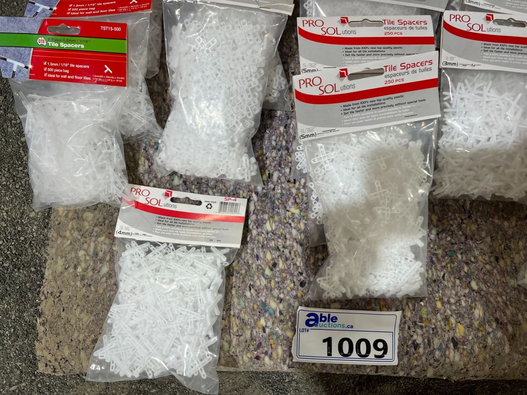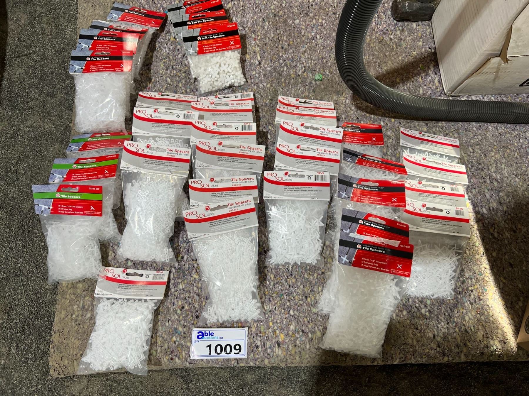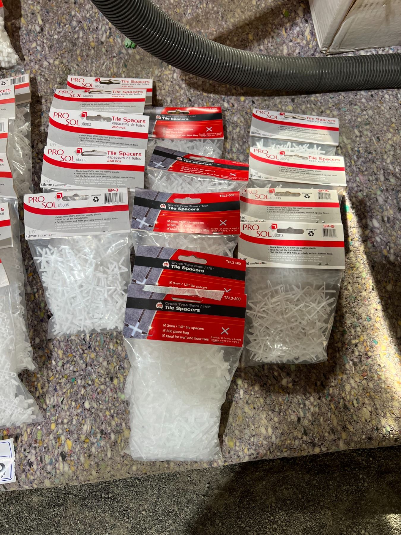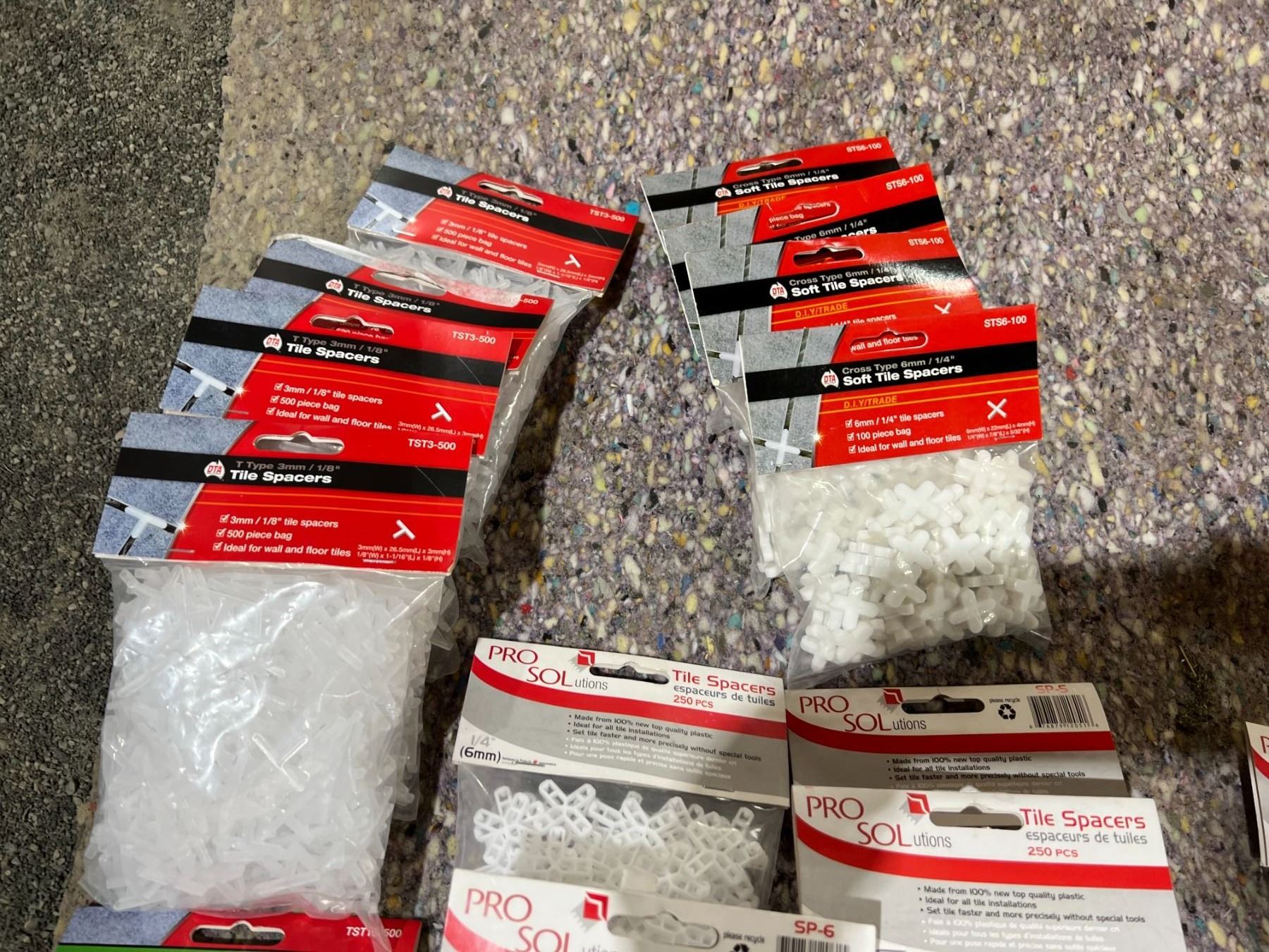 ASST STYLES TILE SPACERS. SIZE AND AMOUNTS SHOWN IN PHOTOS