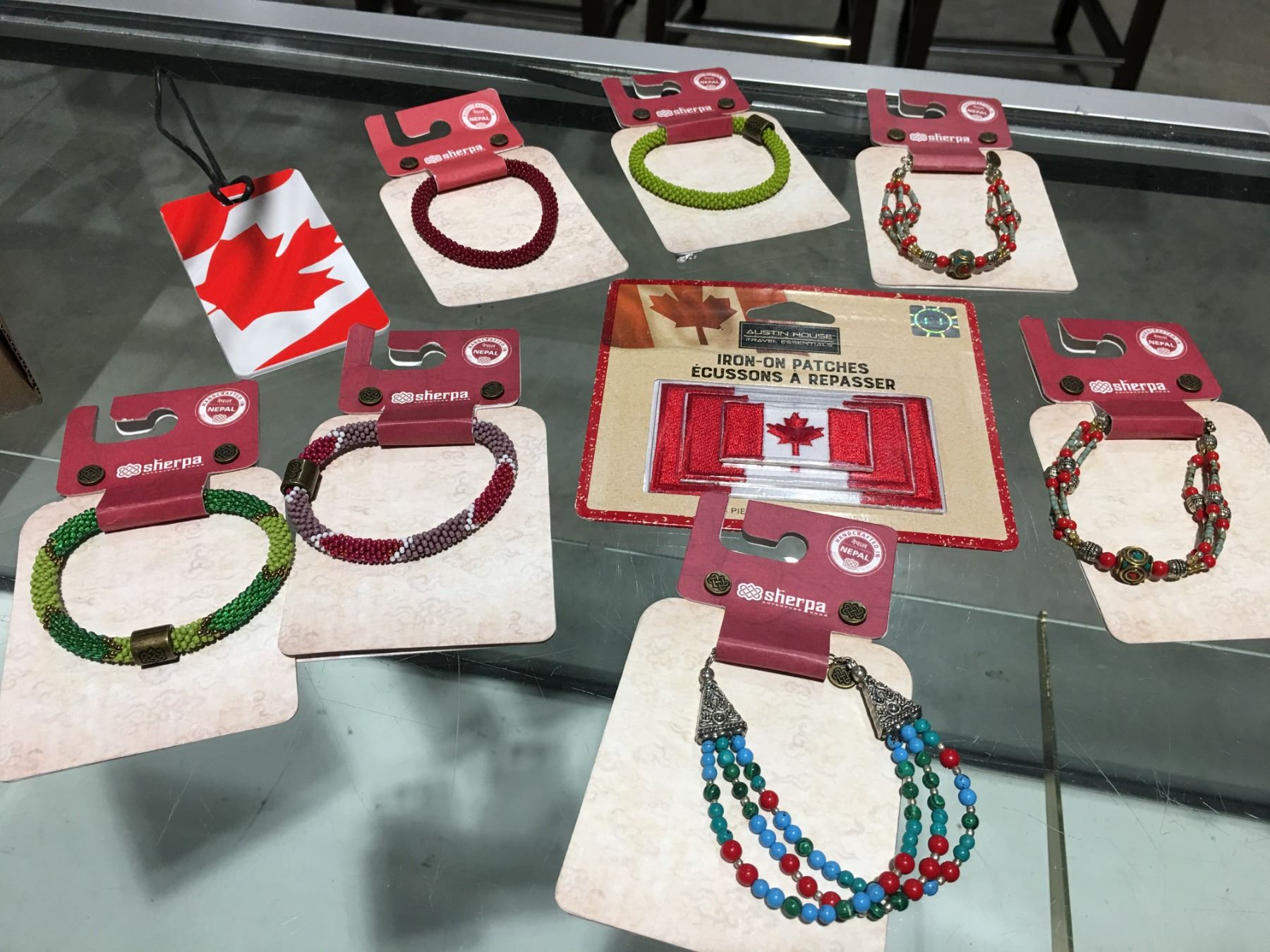 ASSTD OF SHERPA BEADED BRACELETS, CDN LUGGAGE TAG & IRON ON FLAGS