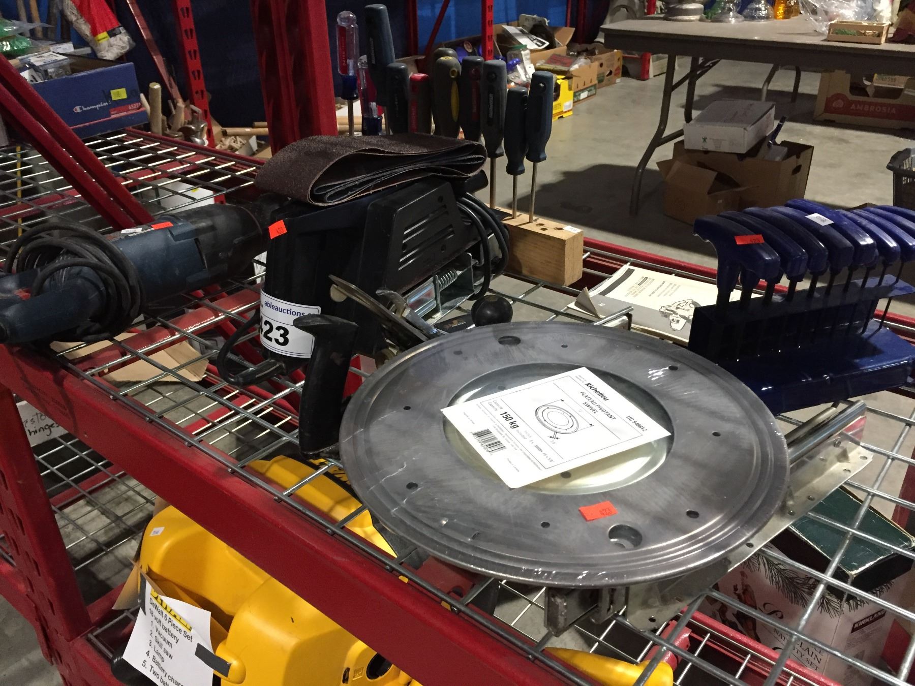 ASSTD TOOLS - RECIP SAW/ 3" BELT SANDER PLANER, ALLEN KEY SET/SWIVEL PULLOUT BRACKET/SCREW DRIVERS