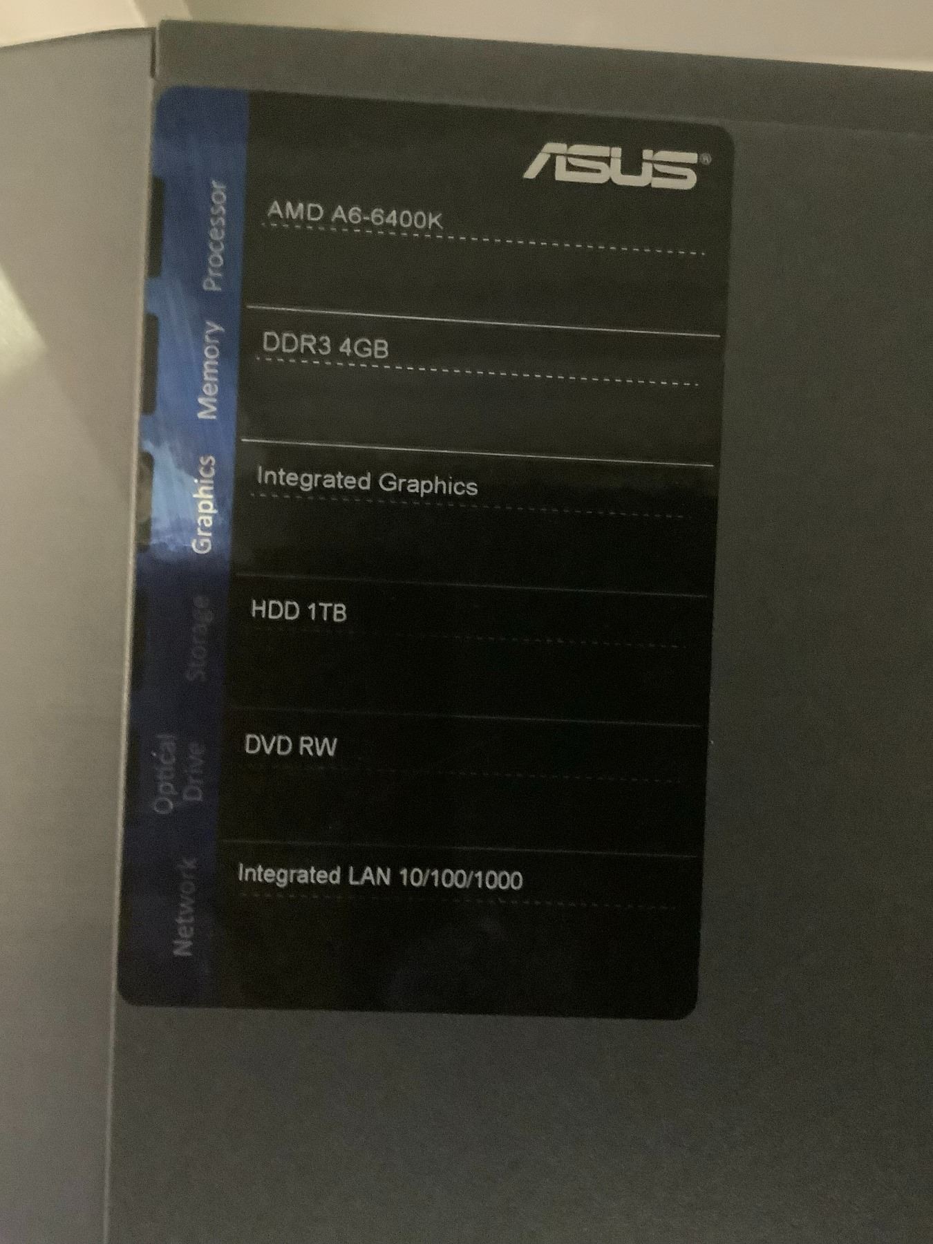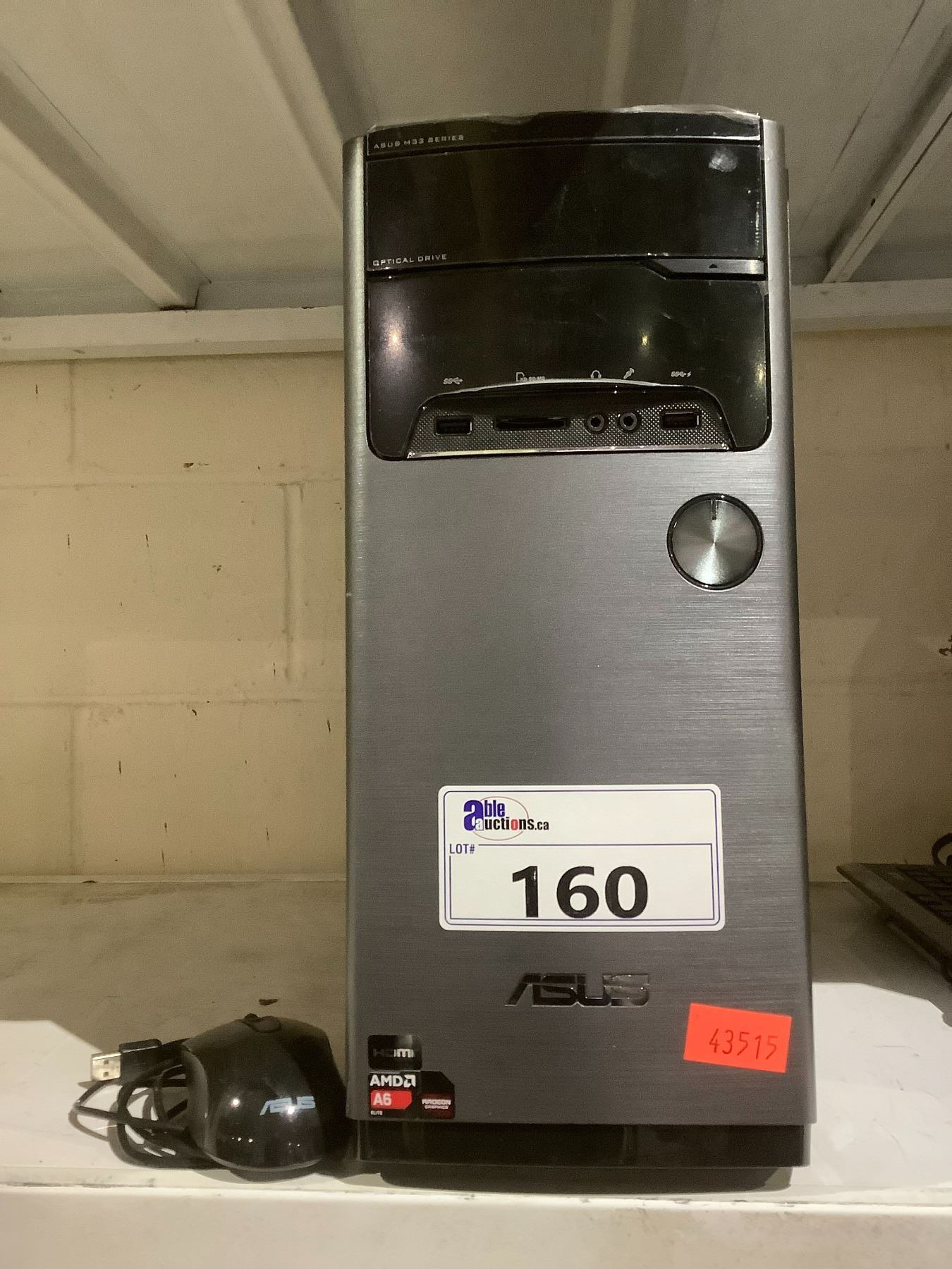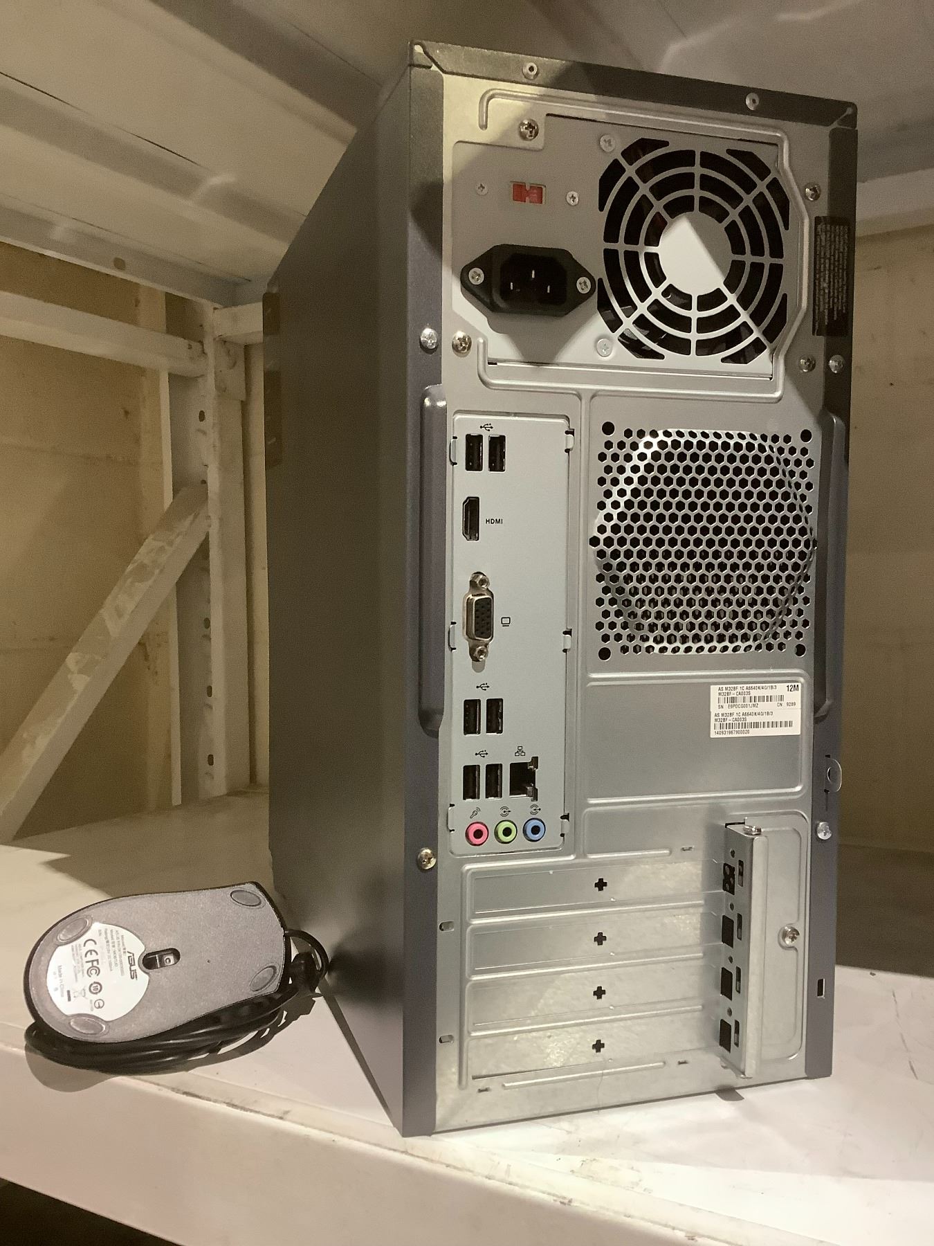 ASUS DESKTOP AMD A606400K CPU, 4GB DDR3 RAM WITH POWER CORD (HARD DRIVE REMOVED) & ASUS OPTICAL MOUSE