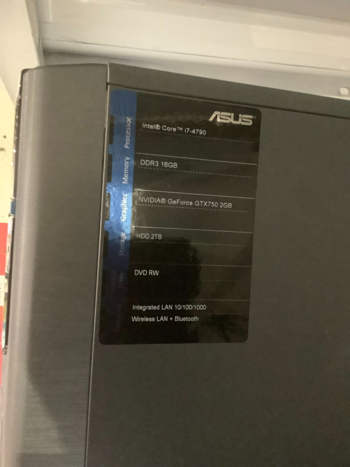 ASUS DESKTOP INTEL CORE I7-4790 CPU, 16GB DDR3 RAM, NVIDIA GEFORCE GTX750 2GB GPU WITH POWER CORD (HARD DRIVE REMOVED) WITH ASUS OPTICAL MOUSE & KEYBOARD