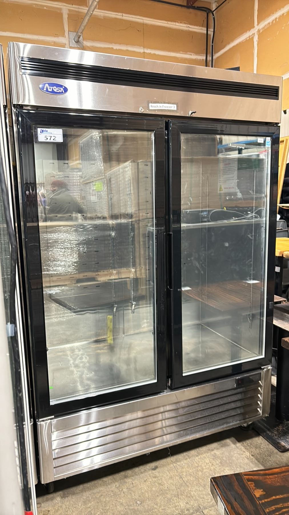ATOSA MCF8703ES 54" STAINLESS STEEL 2 DOOR GLASS COMMERCIAL REACH IN FREEZER WITH KEY - APPROX. 55"W X 32"D X 83"H