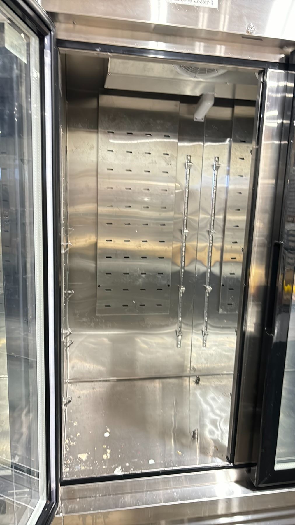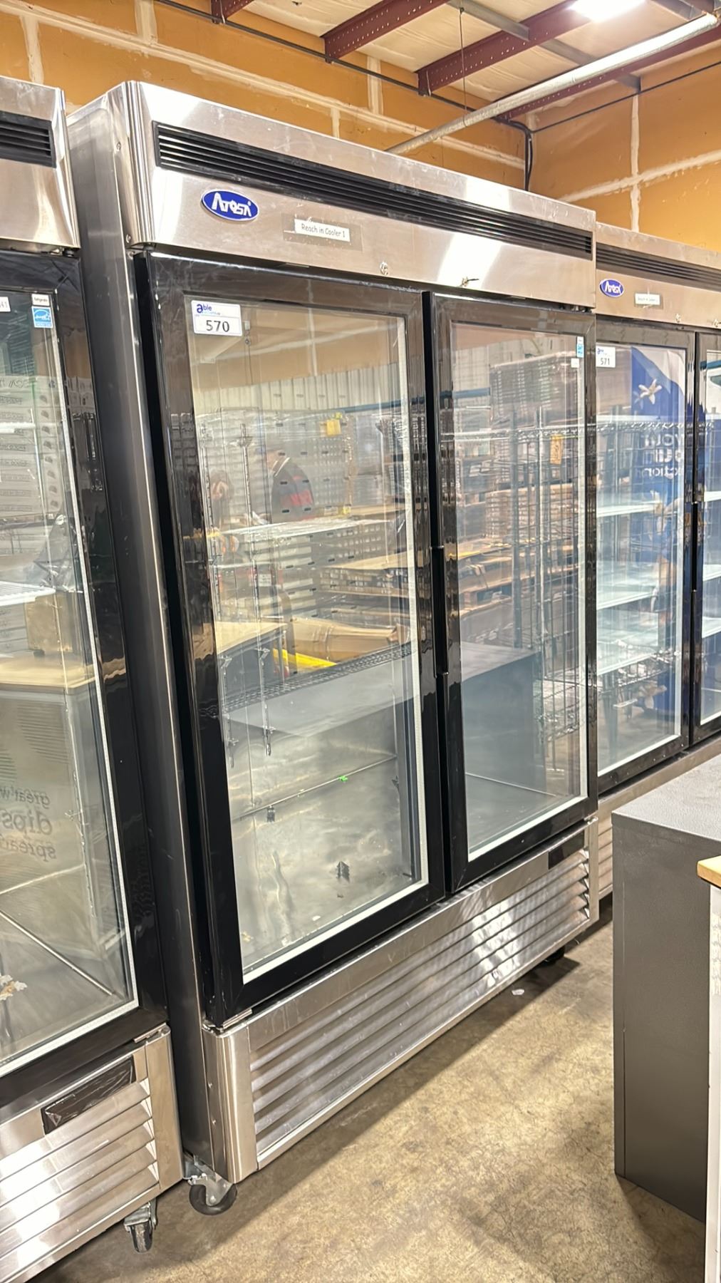 ATOSA MCF8707GR 54" STAINLESS STEEL MOBILE 2 DOOR GLASS COMMERCIAL REACH IN COOLER WITH KEY - APPROX. 54"W X 32"D X 83"H