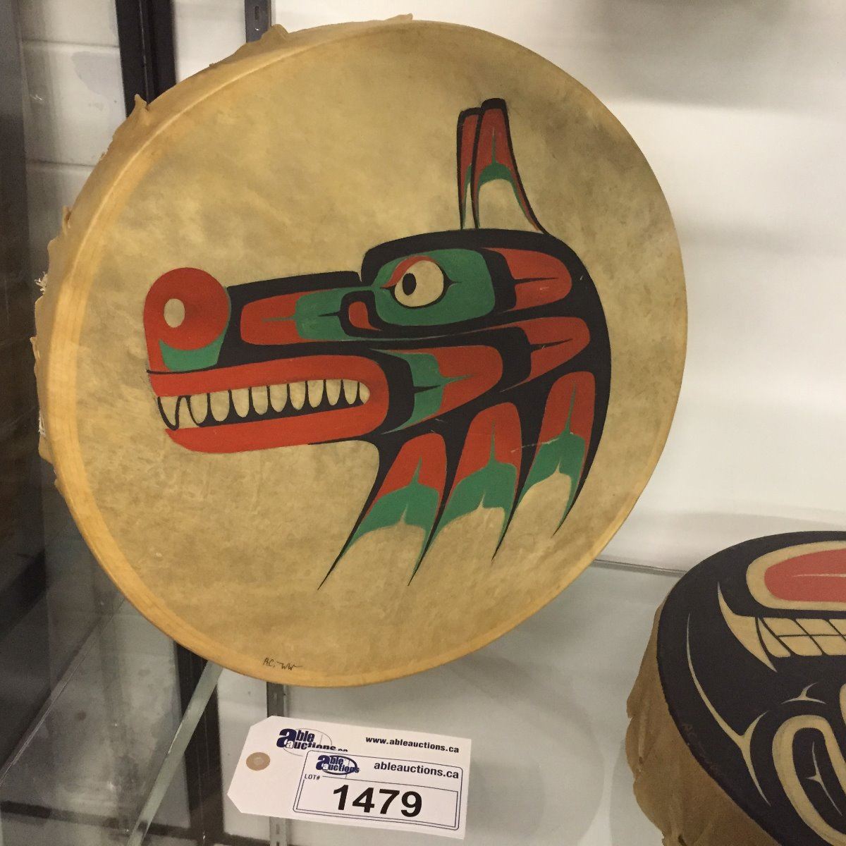 AURELIO (WHITEWOLF) HAND PAINTED "WOLF" HAND DRUM 14" DIAMETER