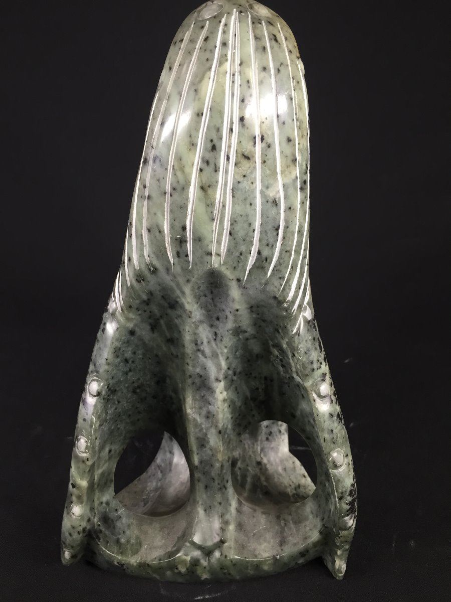 AURELIO (WHITEWOLF) SOAPSTONE HUMPBACK WHALE CARVING 13" L X 7.5" H