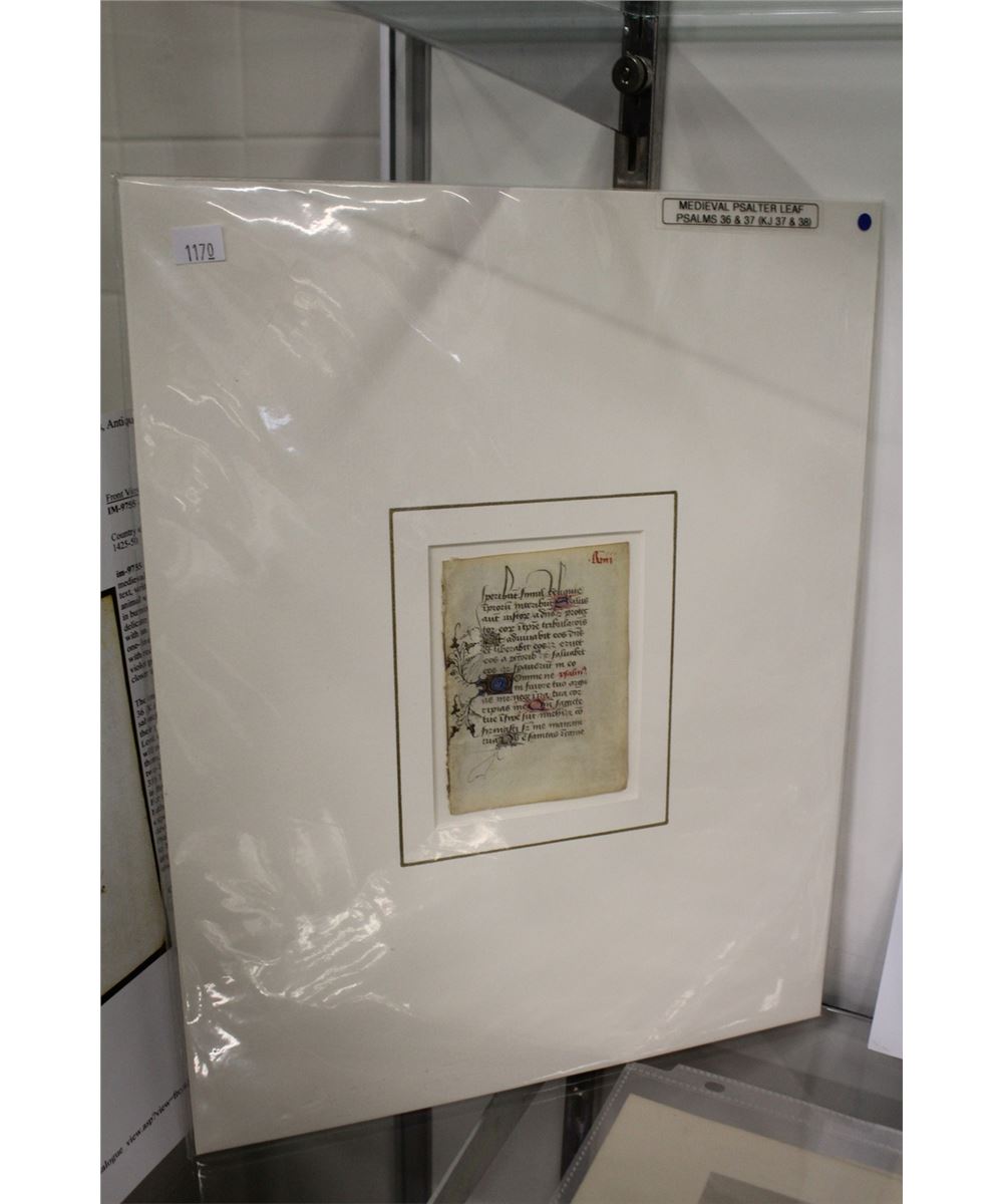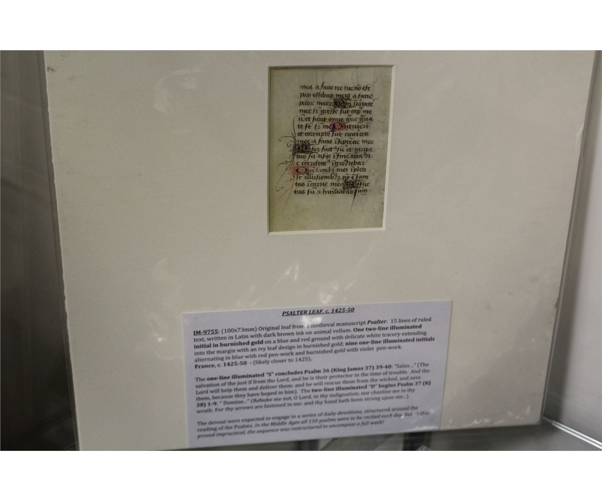 AUTHENTIC 15TH CENTURY BIBLE LEAF  WITH GOLD, 1425-50, THIS IS AN ORIGINAL LEAF FROM A MEDIEVAL MANUSCRIPT PSALTER. 15 LINES OF LATIN ON ANIMAL VELLOM WITH INITIAL IN GOLD