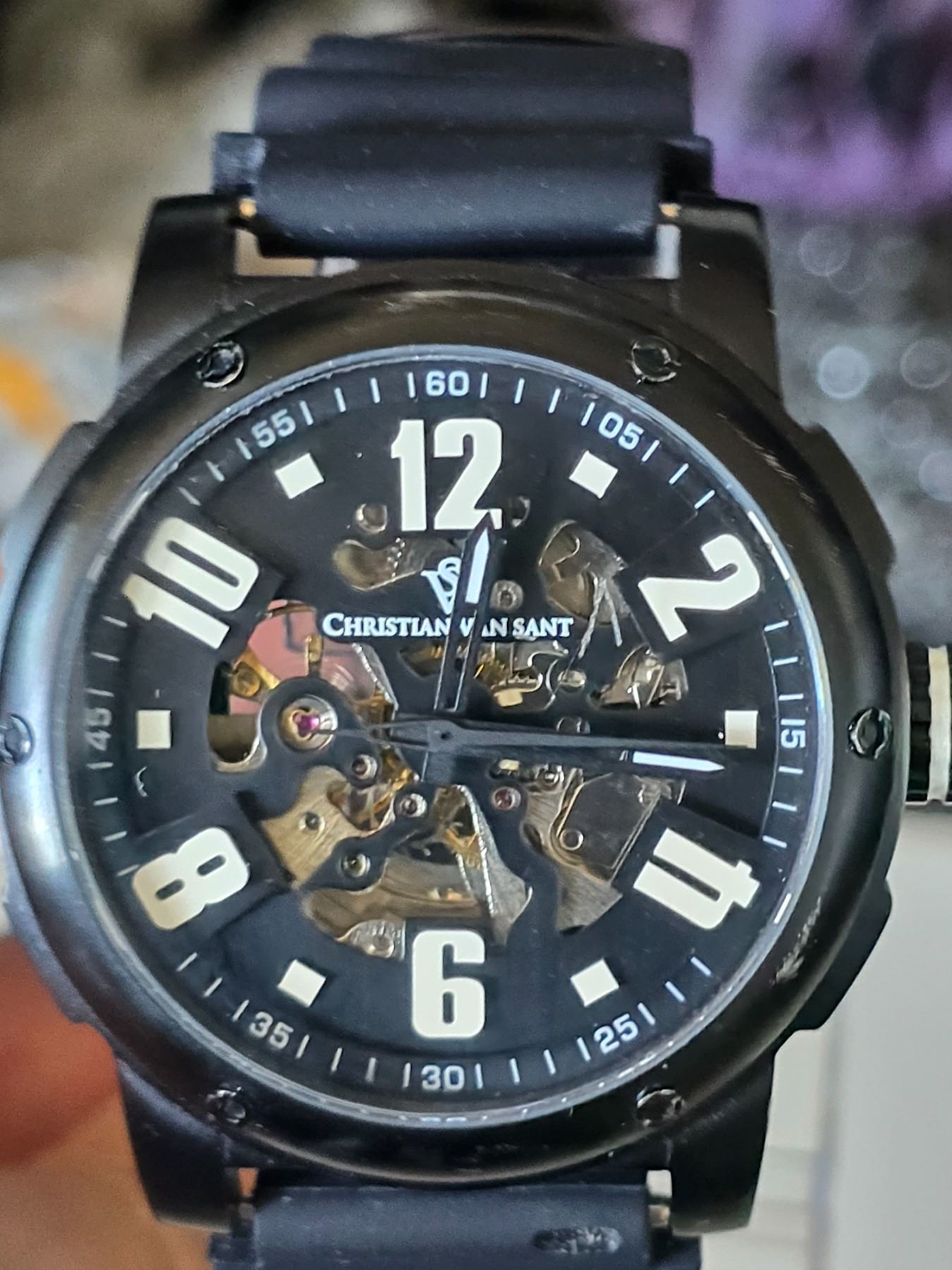 AUTHENTIC CHRISTIAN VAN SANT CV6130 SKELETON AUTOMATIC WATCH STAINLESS STEEL CASE BLACK RUBBER STRAP CASE DIAMETER 43 MM CASE THICKNESS 16 MM WEIGHT 113 G