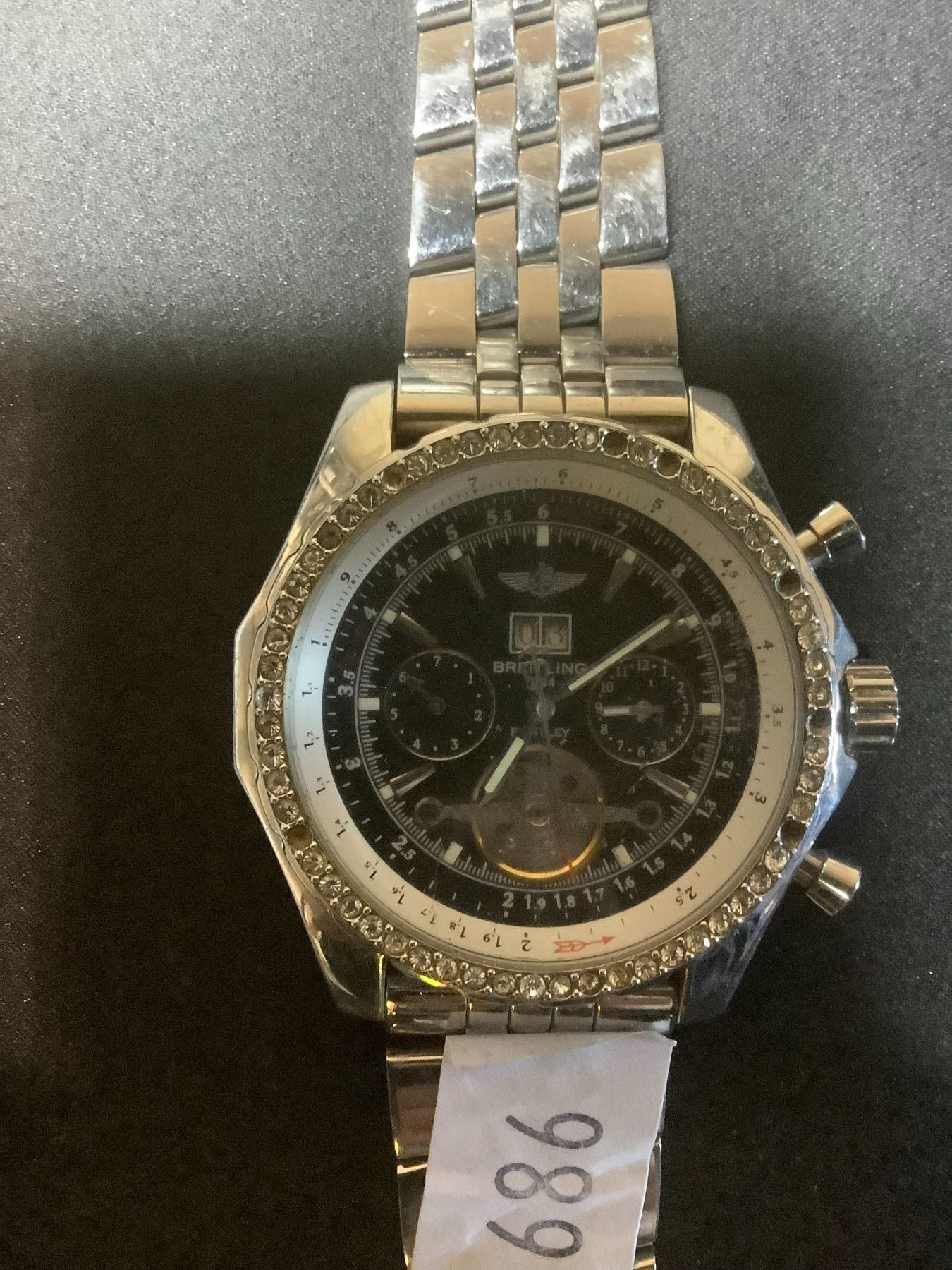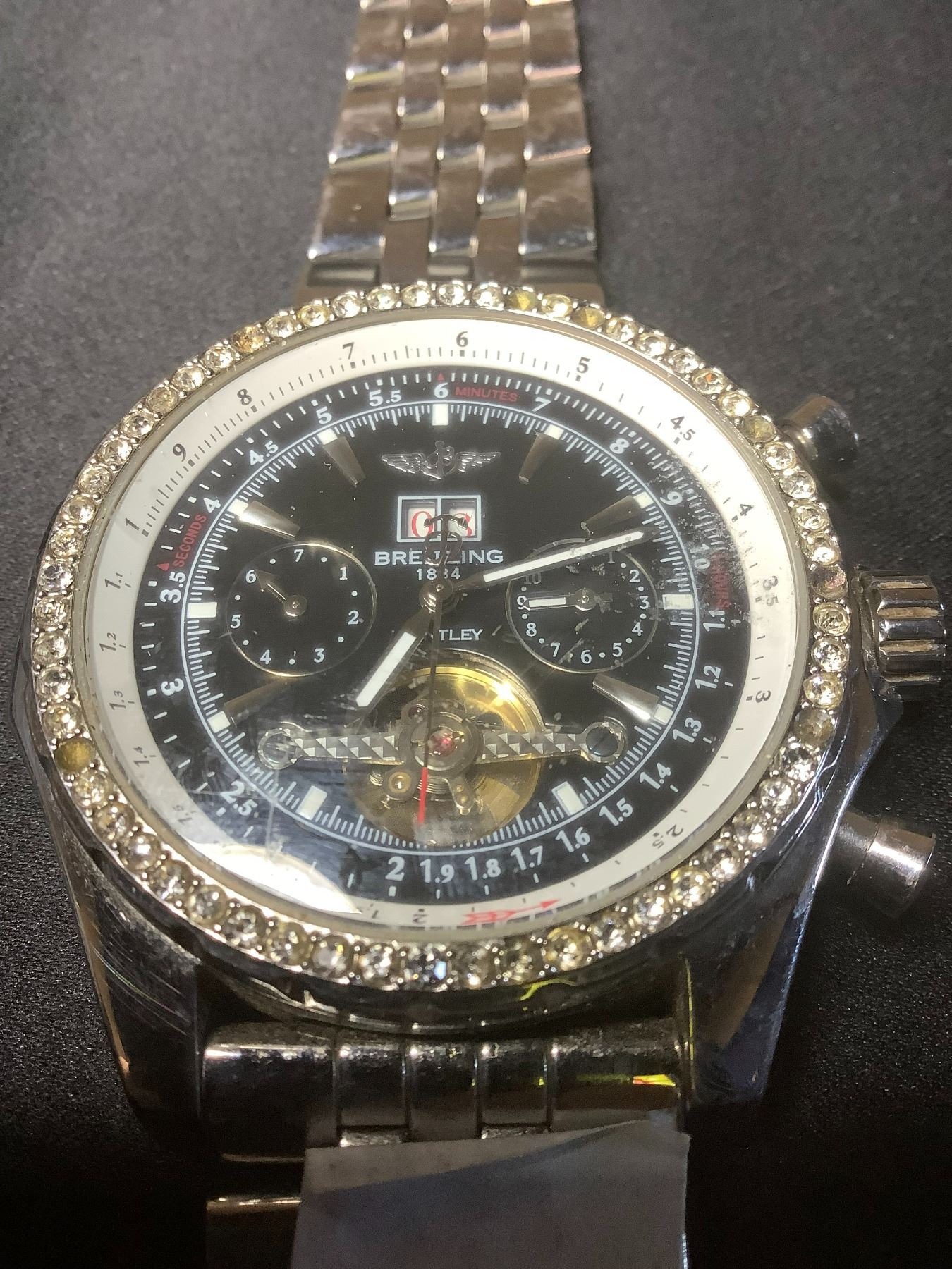 *AUTHENTICITY UNKNOWN* BREITLING BENTLEY EDITION WRIST WATCH STRAP NEEDS REPAIR & BEZEL MISSING STONES J44382