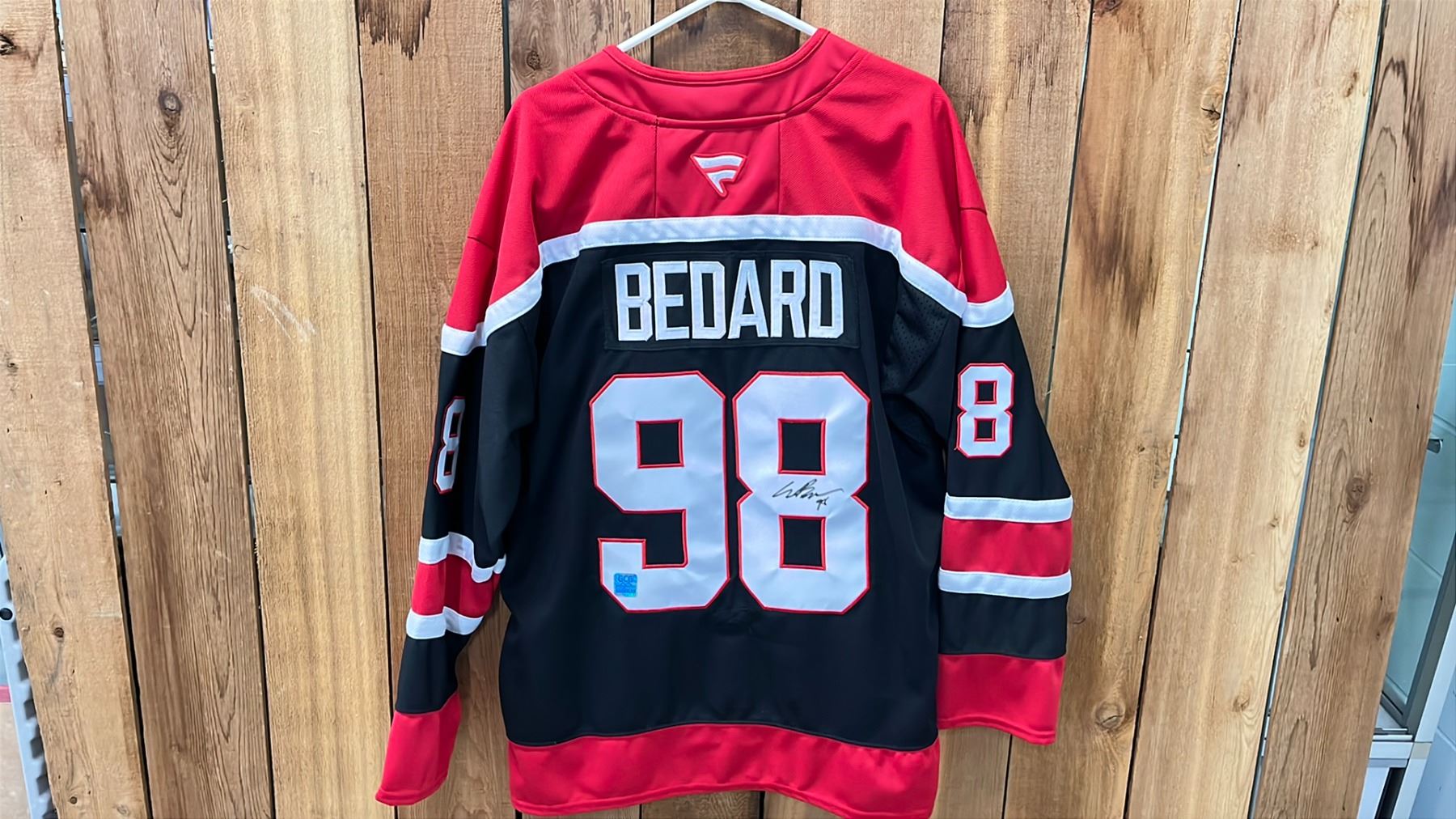 AUTOGRAPHED FANATICS REVERSE RETRO CHICAGO BLACKHAWKS CONNOR BEDARD JERSEY SIZE 52