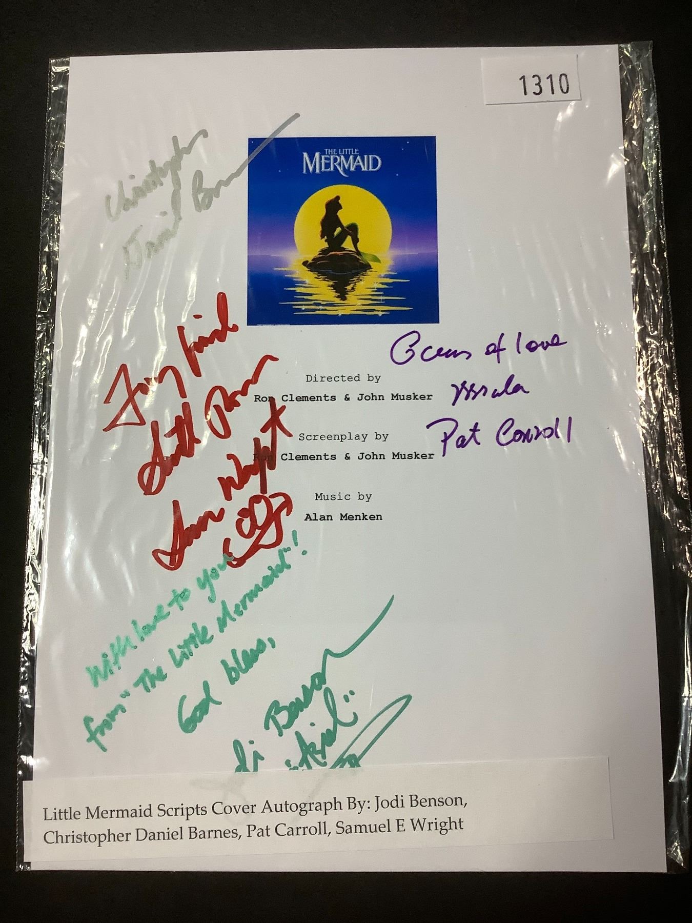 AUTOGRAPHED LITTLE MERMAID SCRIPT COVER WITH COA (SIGNED BY JODI BENSON, CHRISTOPHER DANIEL BARNES, PAT CARROLL, SAMUEL E WRIGHT)