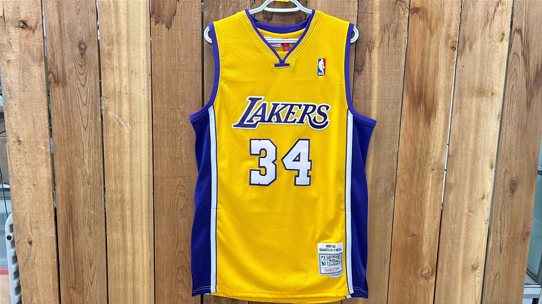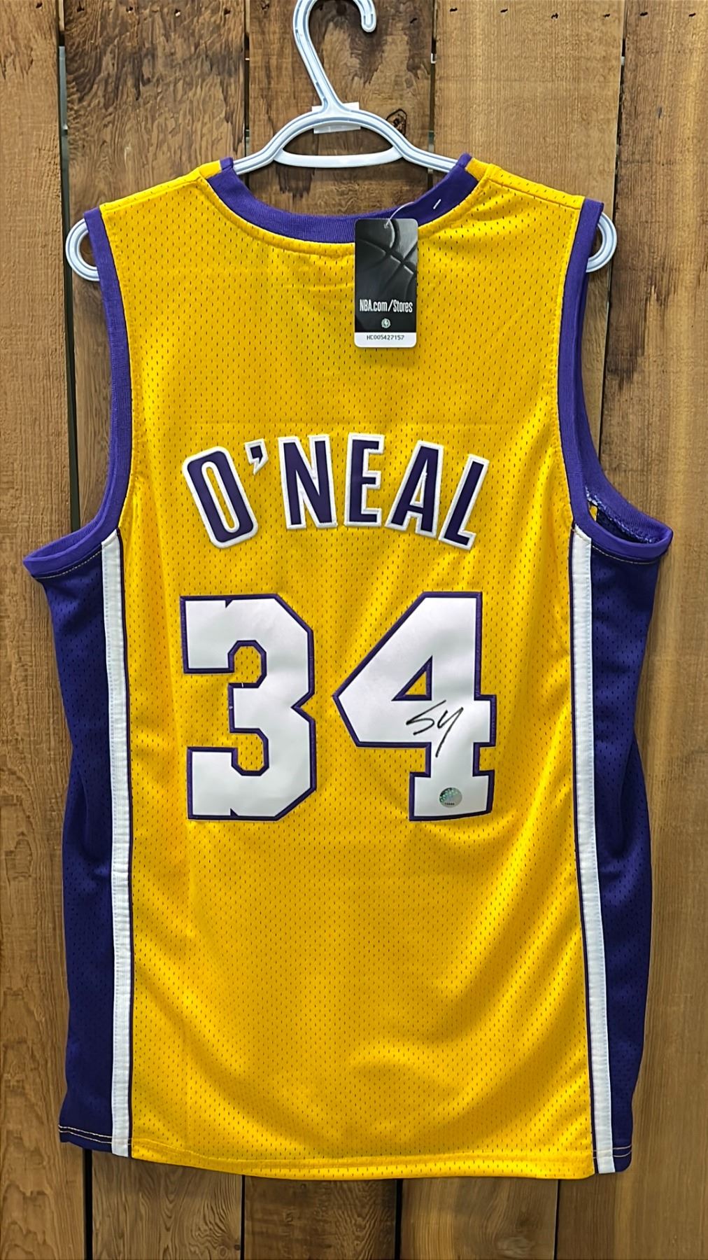AUTOGRAPHED MITCHELL AND NESS LOS ANGELES LAKERS SHAQUILLE O'NEAL JERSEY SIZE L