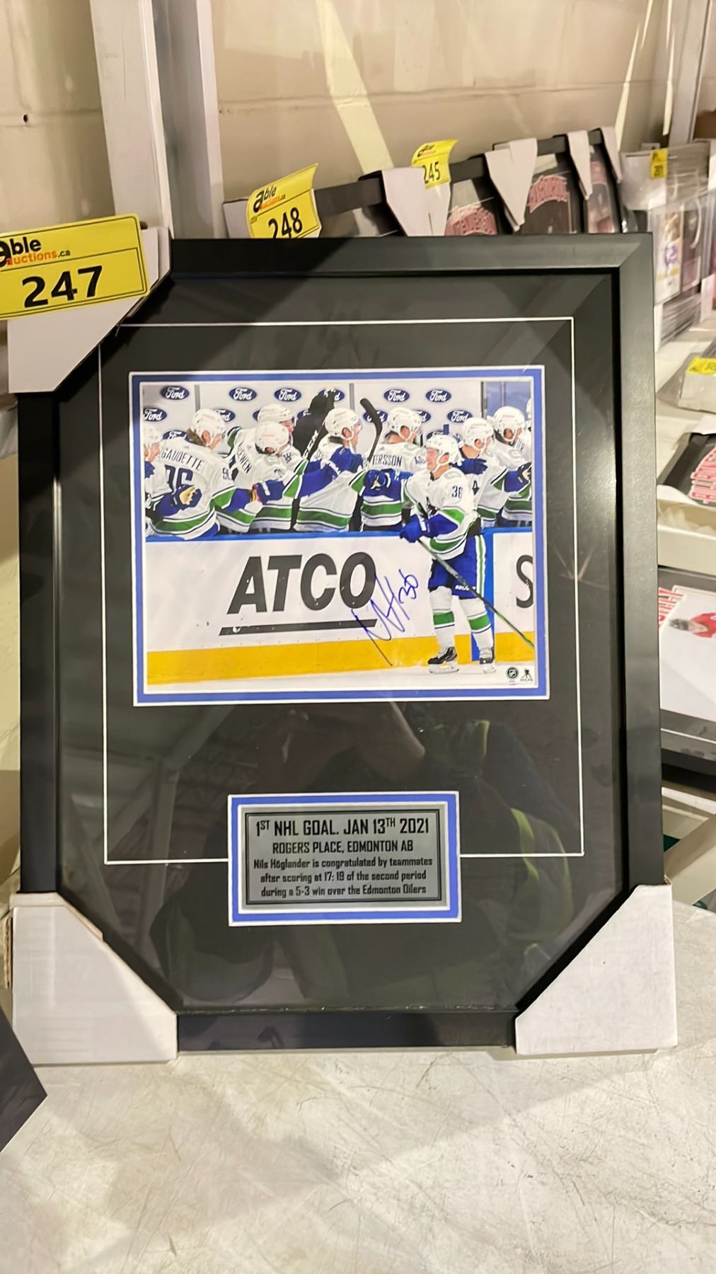 AUTOGRAPHED VANCOUVER CANUCKS NILS HOGLANDER FIRST GOAL FRAMED PHOTO