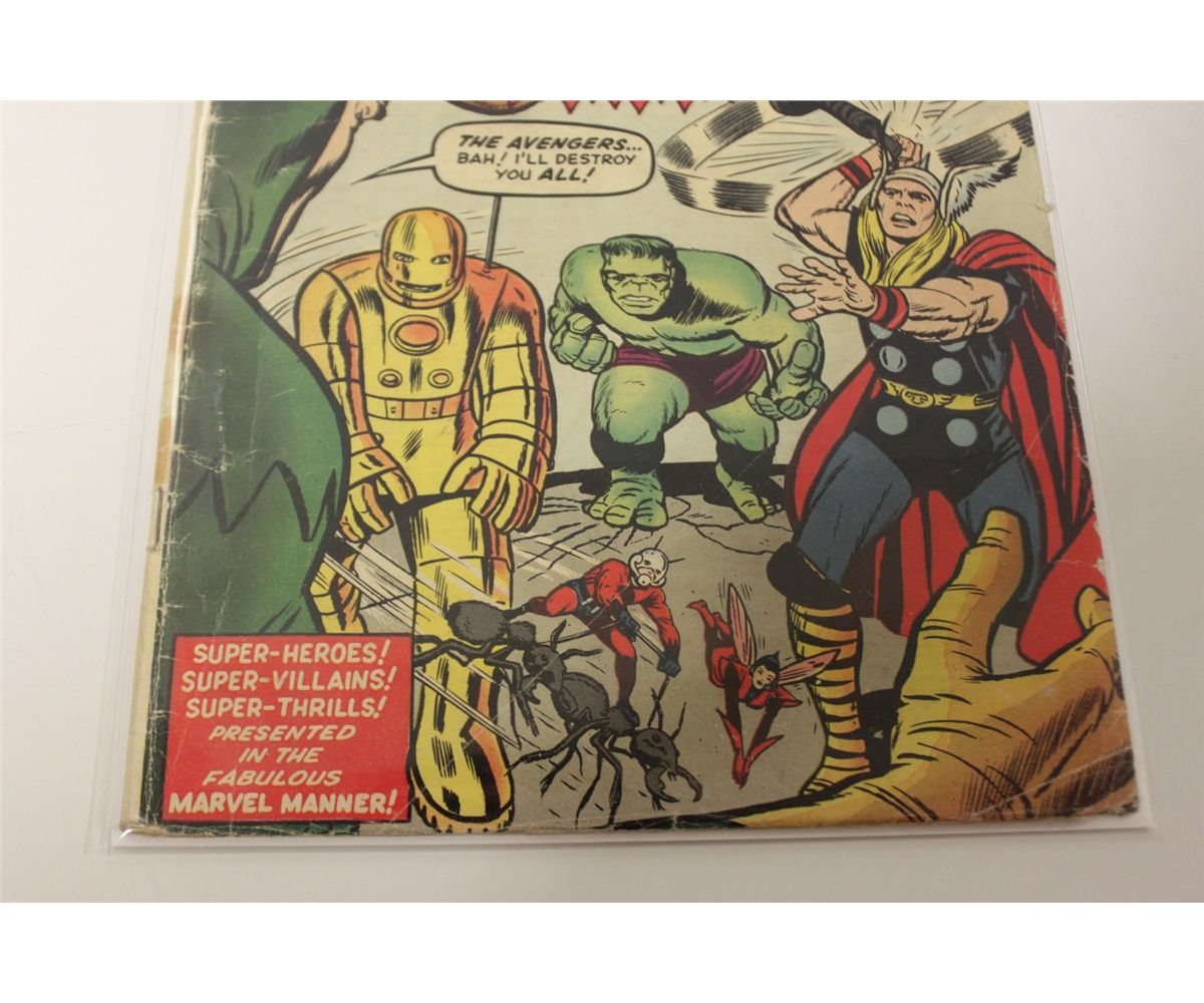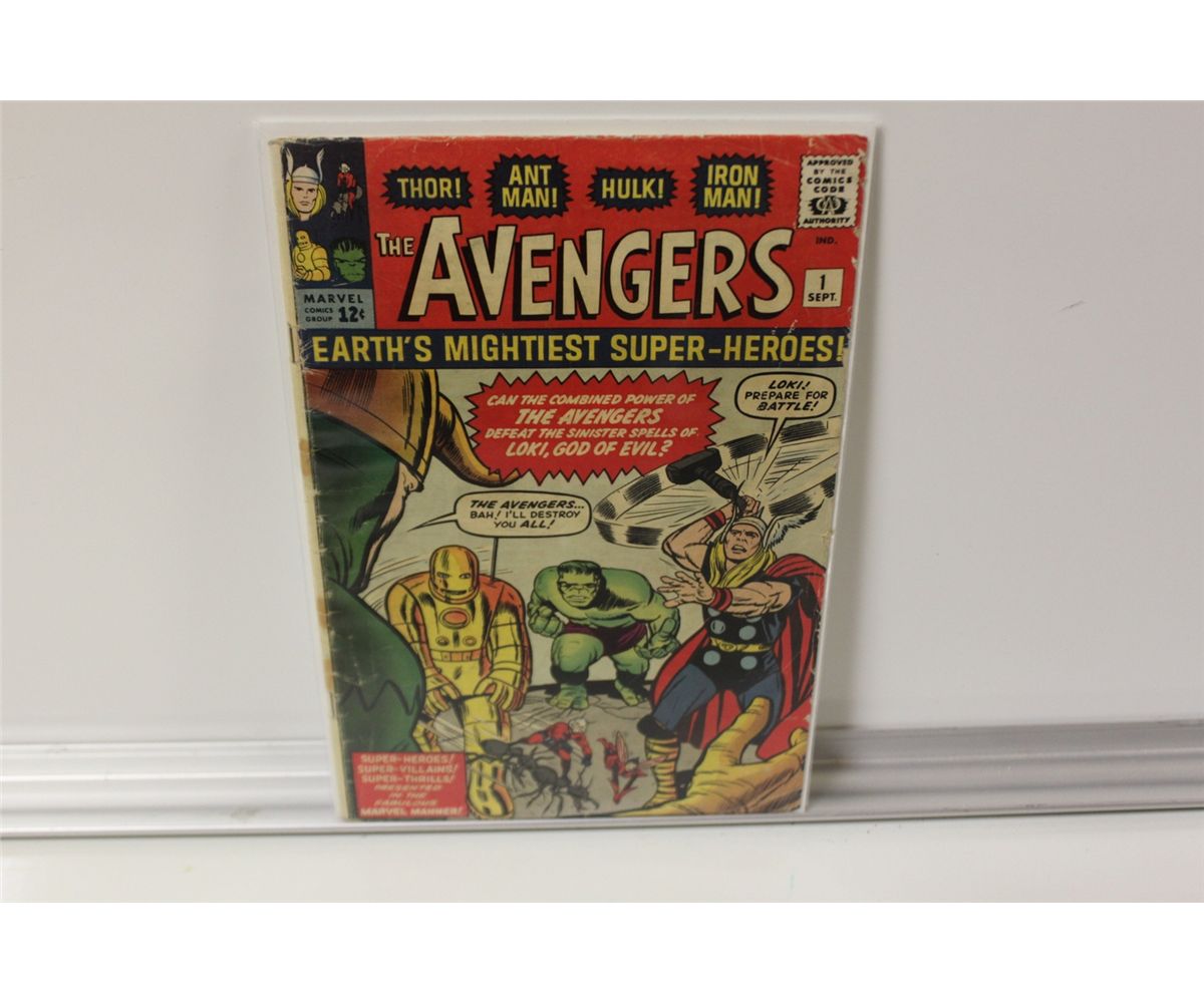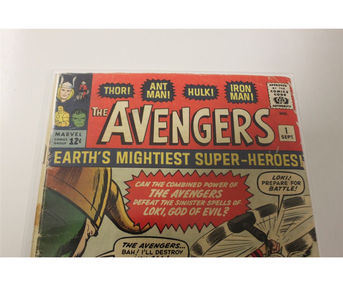 AVENGERS #1 (1963) ORIGIN & 1ST APPEARANCE THE AVENGERS. LOWER GRADE BUT VERY SOLID & STRUCTURALLY SOUND COPY. COVER & CENTREFOLD TIGHT & SECURE.  NO PIECES OUT.  HAS 3 TAPE STAINS ON SPINE, NOT ACTUAL TAPE.  GENERAL WEAR FOR GRADE.
