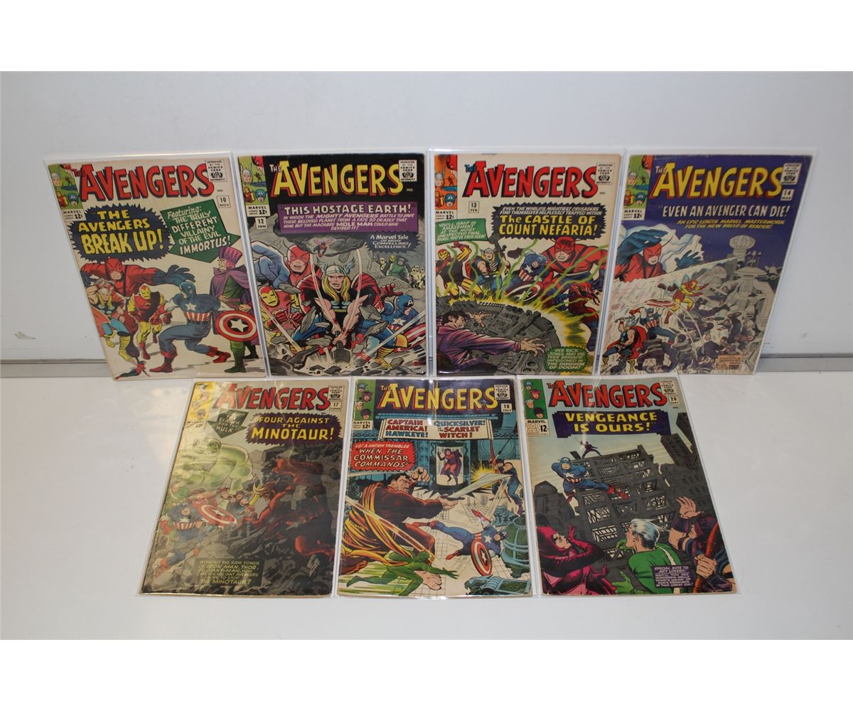 AVENGERS #10, 12-14, 17-18 & 20 (1964-65) 7 EARLY SILVER AGE ISSUES. LOWER MID TO SOLID MID GRADE AVG. GLOSSY, TIGHT AND SUPPLE, A NICE RUN!