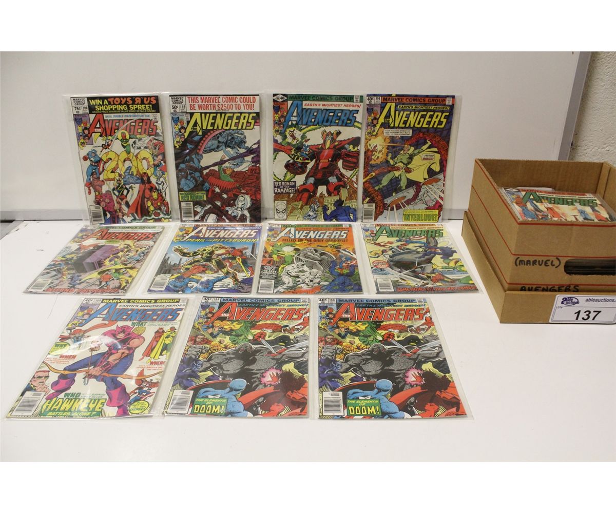 AVENGERS #127,129,132,134-138,140,143,146-180,182-194 & 197-200 (1974-80) CLOSE TO A 7 YEAR LONG BRONZE AVENGERS RUN!  HIGH MID GRADE AVG., GLOSSY, TIGHT & SUPPLE. 62 BOOKS TOTAL.