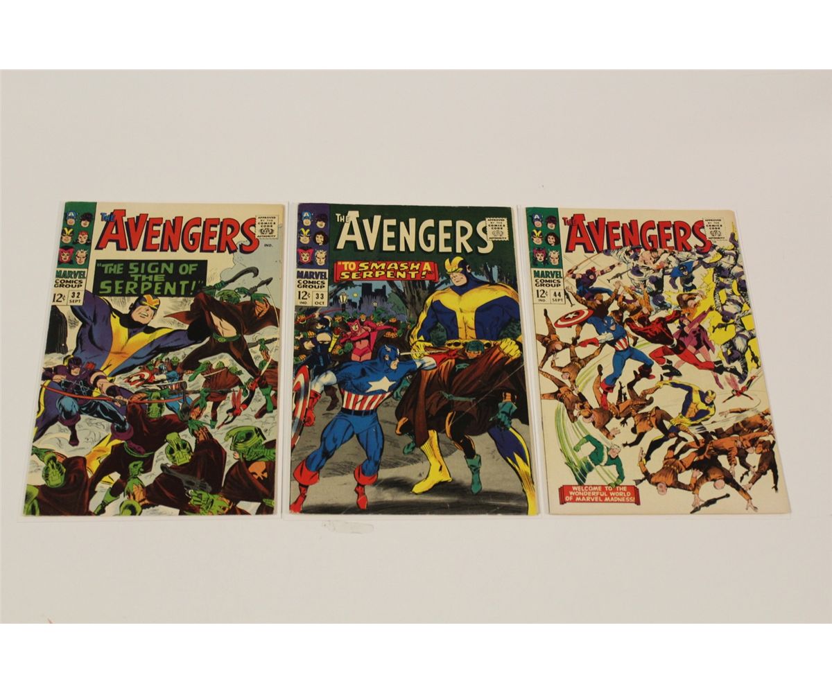 AVENGERS #32, 33 & 44 (1966-67) SHARP MID TO HIGHER MID GRADE AVERAGE. GLOSSY, TIGHT & SUPPLE. VERY NICE BOOKS!