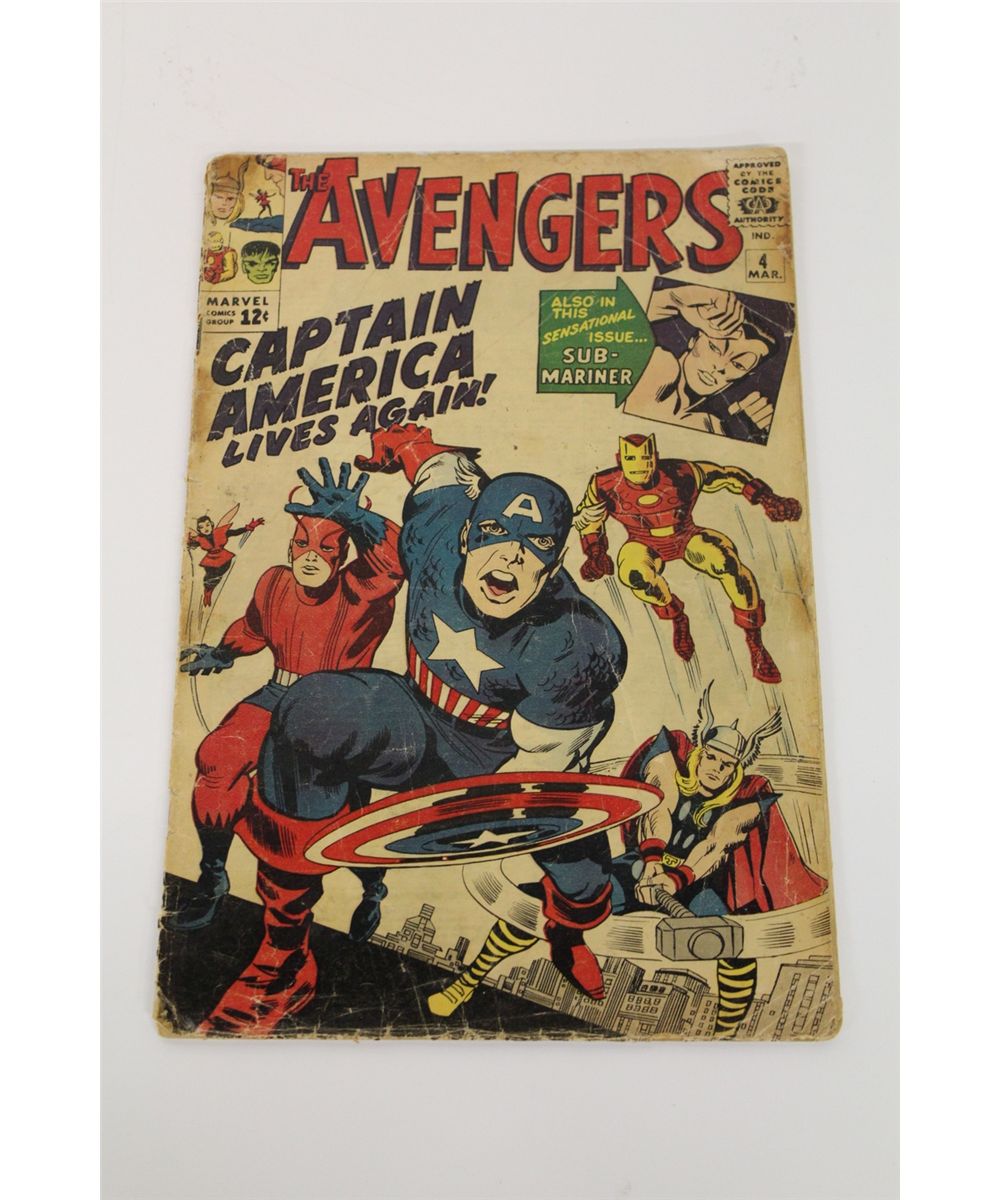 AVENGERS #4 *FIRST APPEARANCE SILVER AGE CAPTAIN AMERICA THIS BOOK IS A MUST HAVE FOR ANY SERIOUS AVENGERS MARVEL COLLECTOR. COMPLETE, IN LOW GRADE. THERE IS A LARGE TEAR ON 1ST PAGE, MISSING ONE NON STORY PAGE