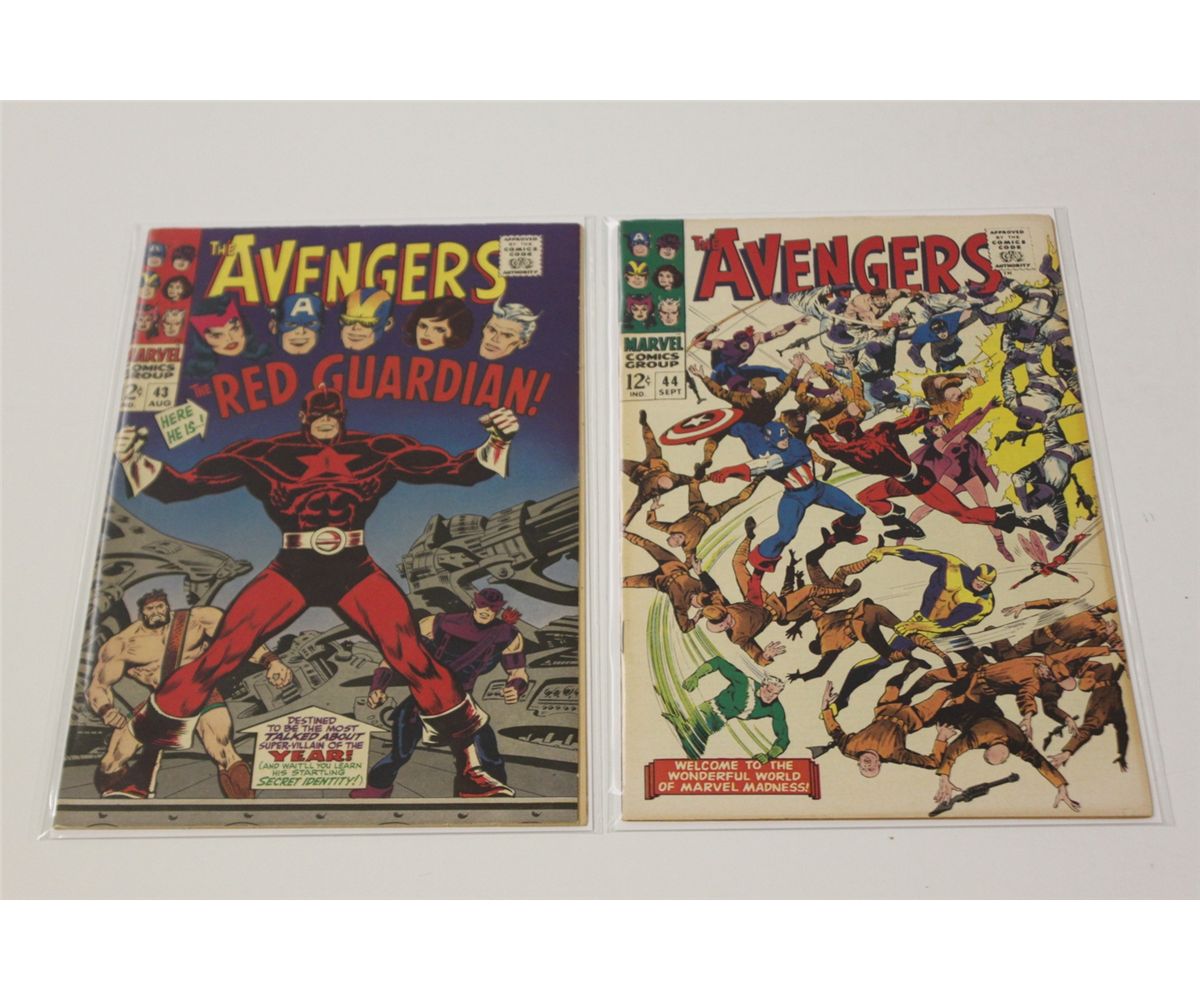 AVENGERS #43 & 44 (1967) EXCELLENT COPIES, SHARP GLOSSY & SUPPLE.  VERY NICE BOOKS.
