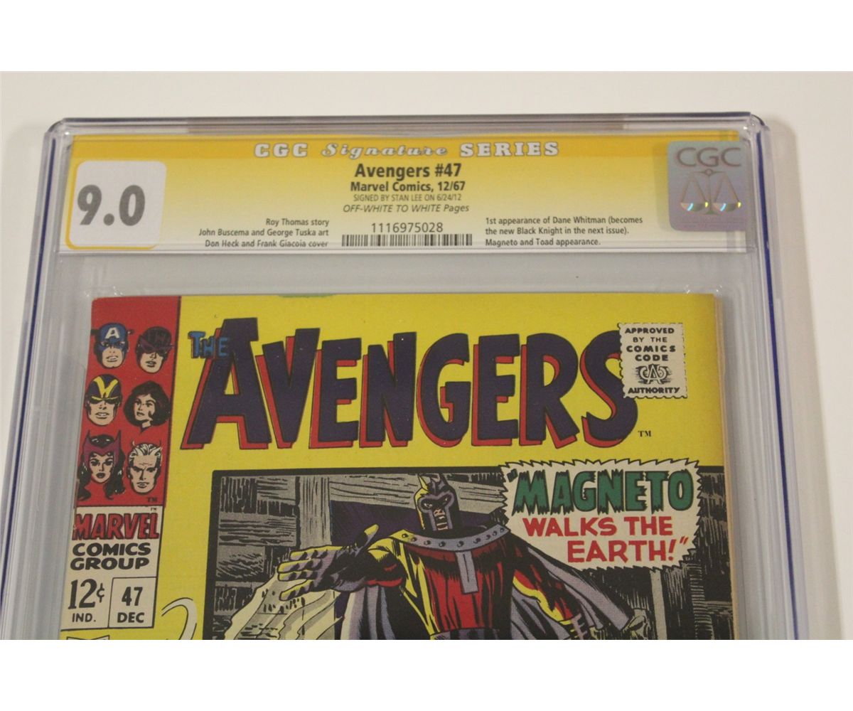 AVENGERS #47 (1967) CGC GRADED 9.0 SIGNED BY STAN LEE- 1ST APP. OF DANE WHITMAN (BECOMES THE NEW BLACK KNIGHT IN THE NEXT ISSUE) MAGNETO AND TOAD APP.