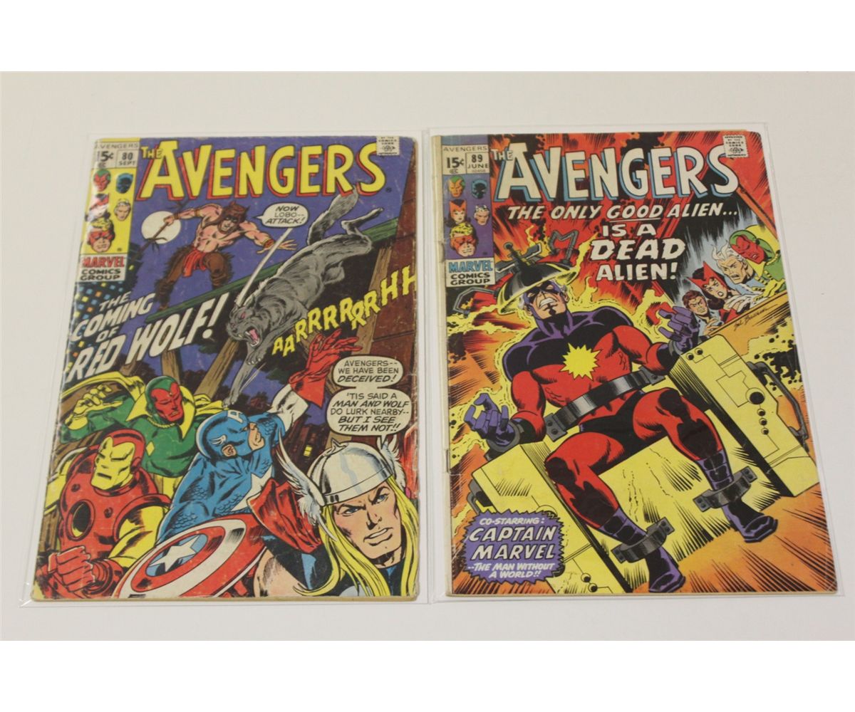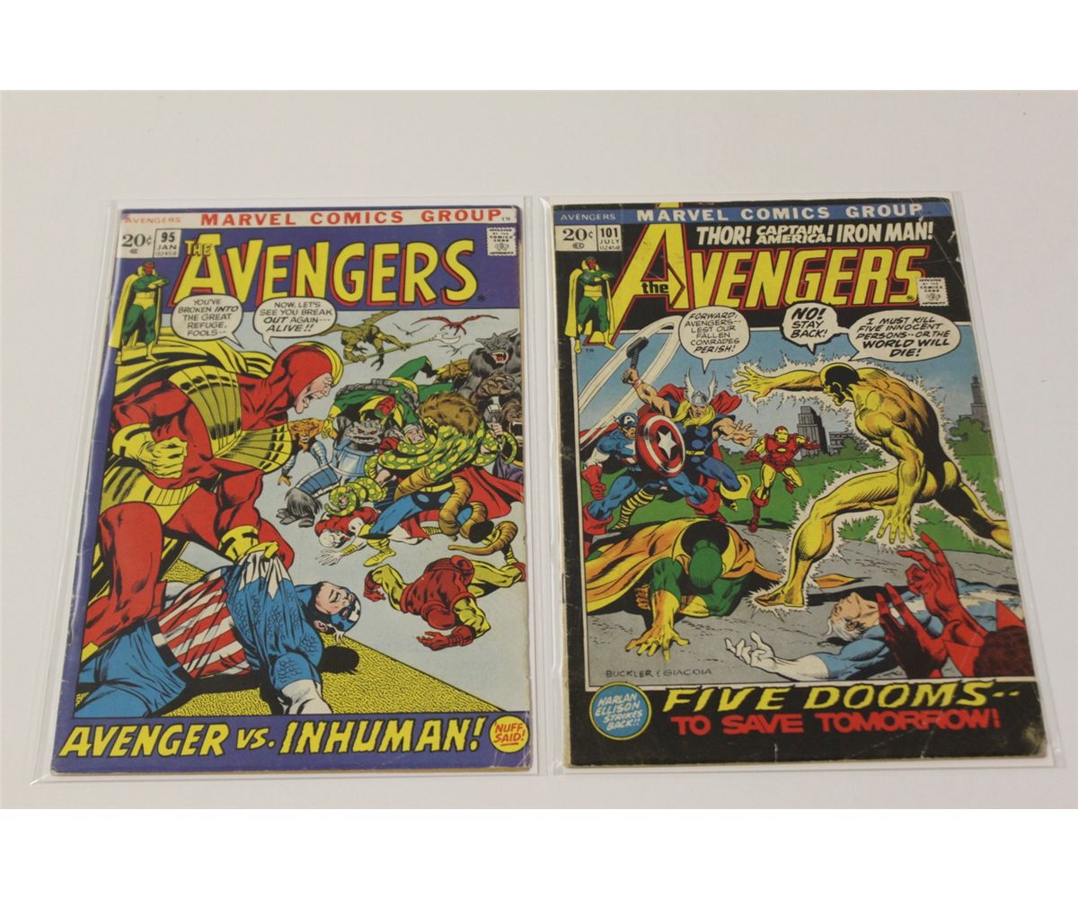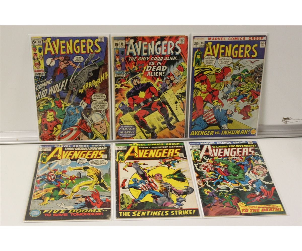AVENGERS 6 ISSUE BRONZE AGE LOT (1970 - 73) #80, 89, 95, 101, 103 & 118.  LOWER GRADE, COMPLETE, COVERS & CENTREFOLDS ATTACHED.