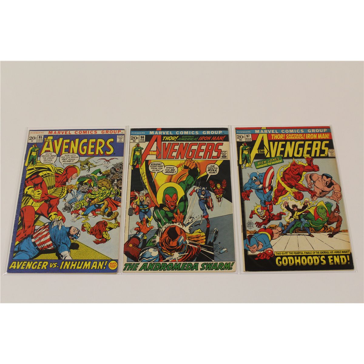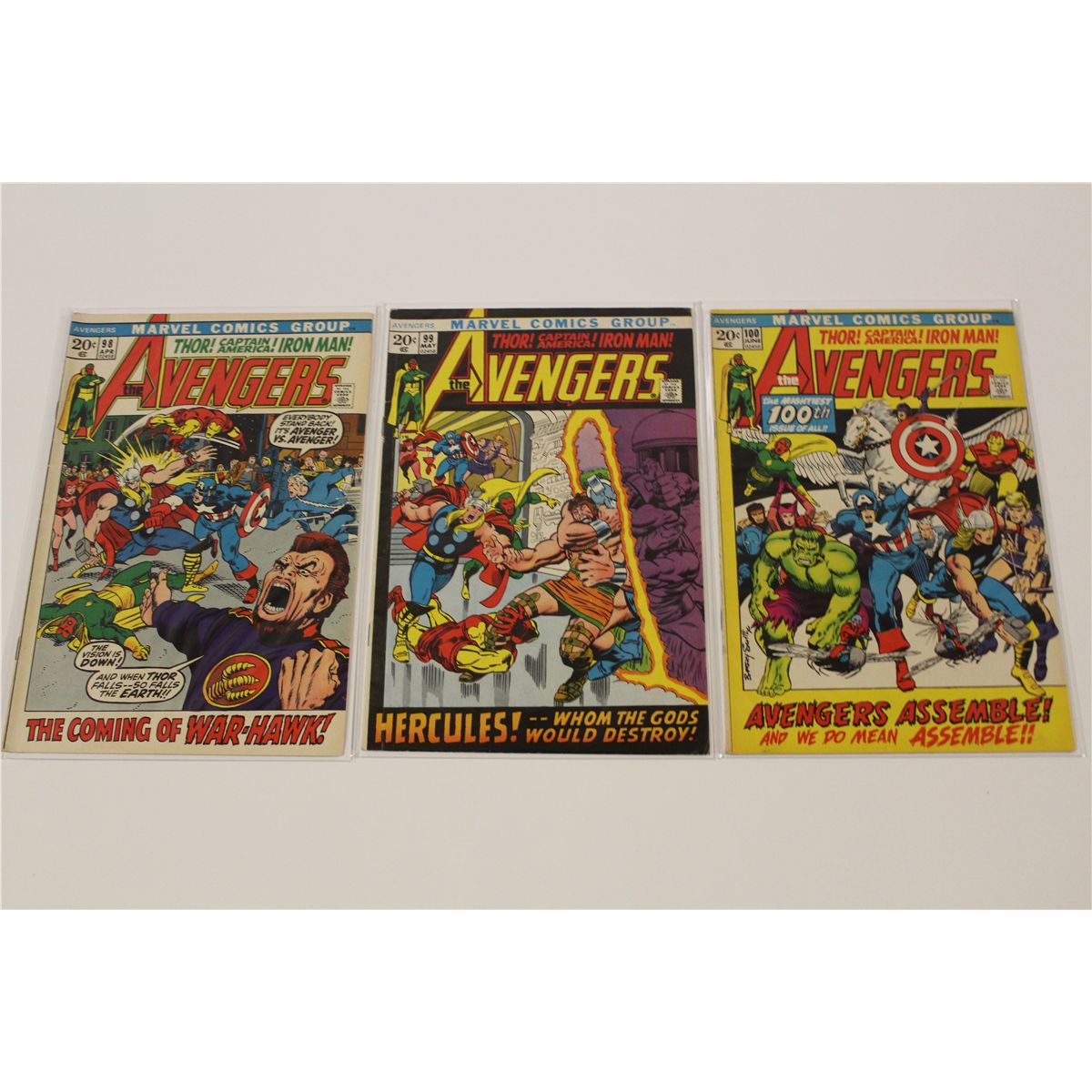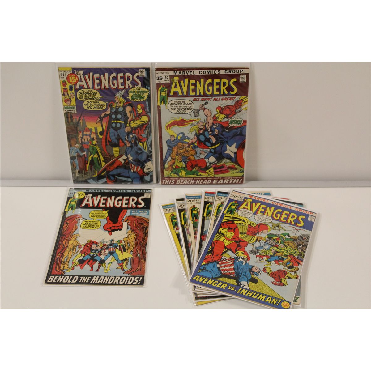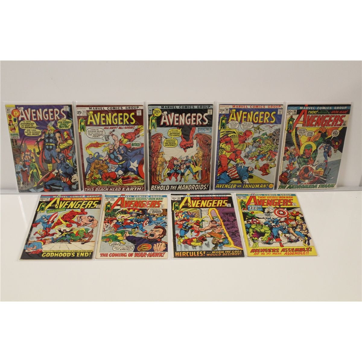 AVENGERS #92-100 CONSECUTIVE (1971-72) COMPLETE 9 ISSUE CLASSIC ADAMS & SMITH ART EARLY BRONZE RUN, LOADED WITH KEYS! SHARP MID TO HIGHER MID GRADE AVERAGE, GLOSSY, TIGHT & SUPPLE, VERY NICE BOOKS! 2013 OVERSTREET TOP END GUIDE VALUE OF OVER $1,200